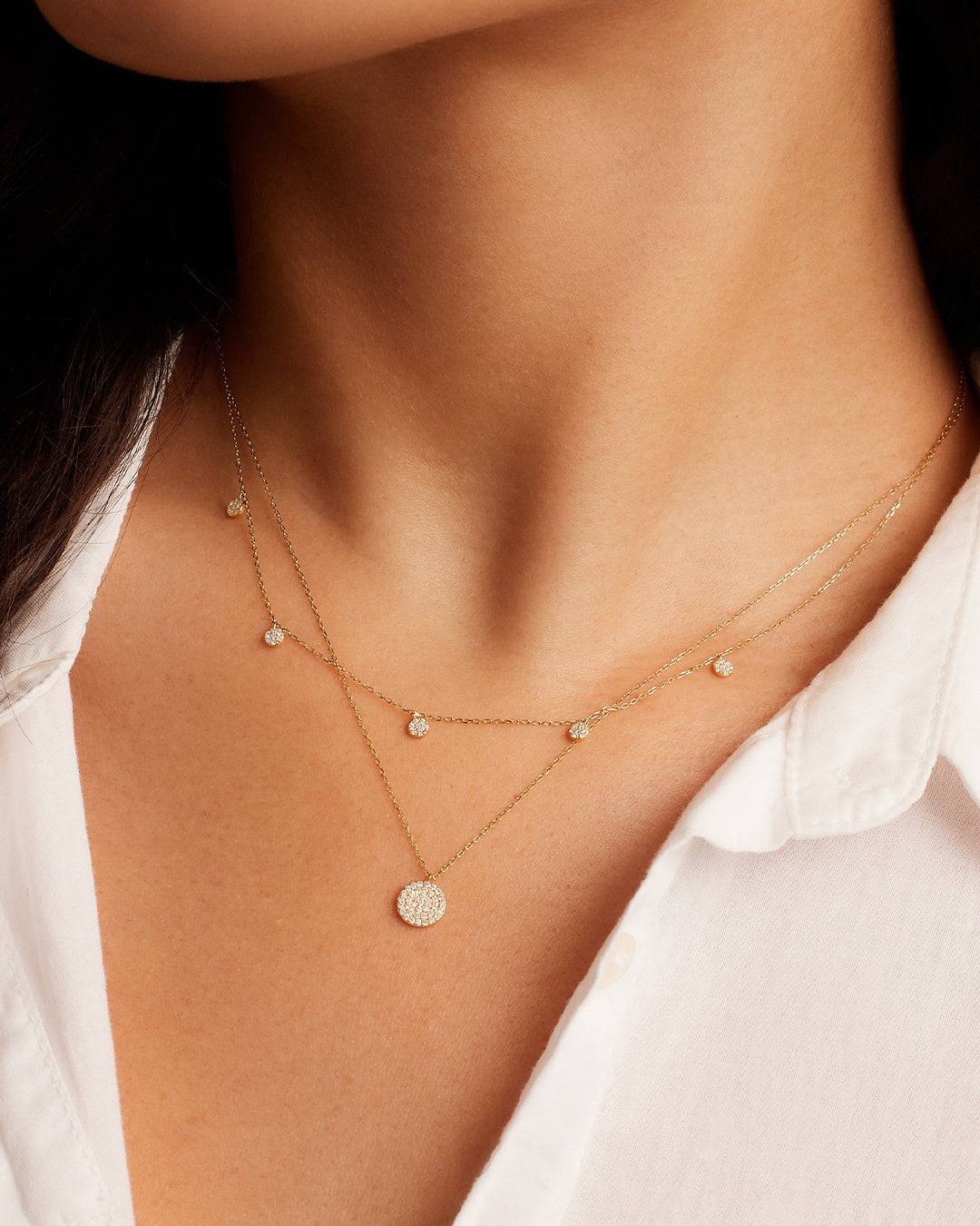 This elegant Diamond Pavé Necklace features a stunning display of diamonds in a pavé setting. Made with high-quality materials and expert craftsmanship, this necklace adds a touch of luxury to any outfit. The diamond pavé design catches the light for a subtle yet eye-catching sparkle. Elevate your look with this timeless piece.