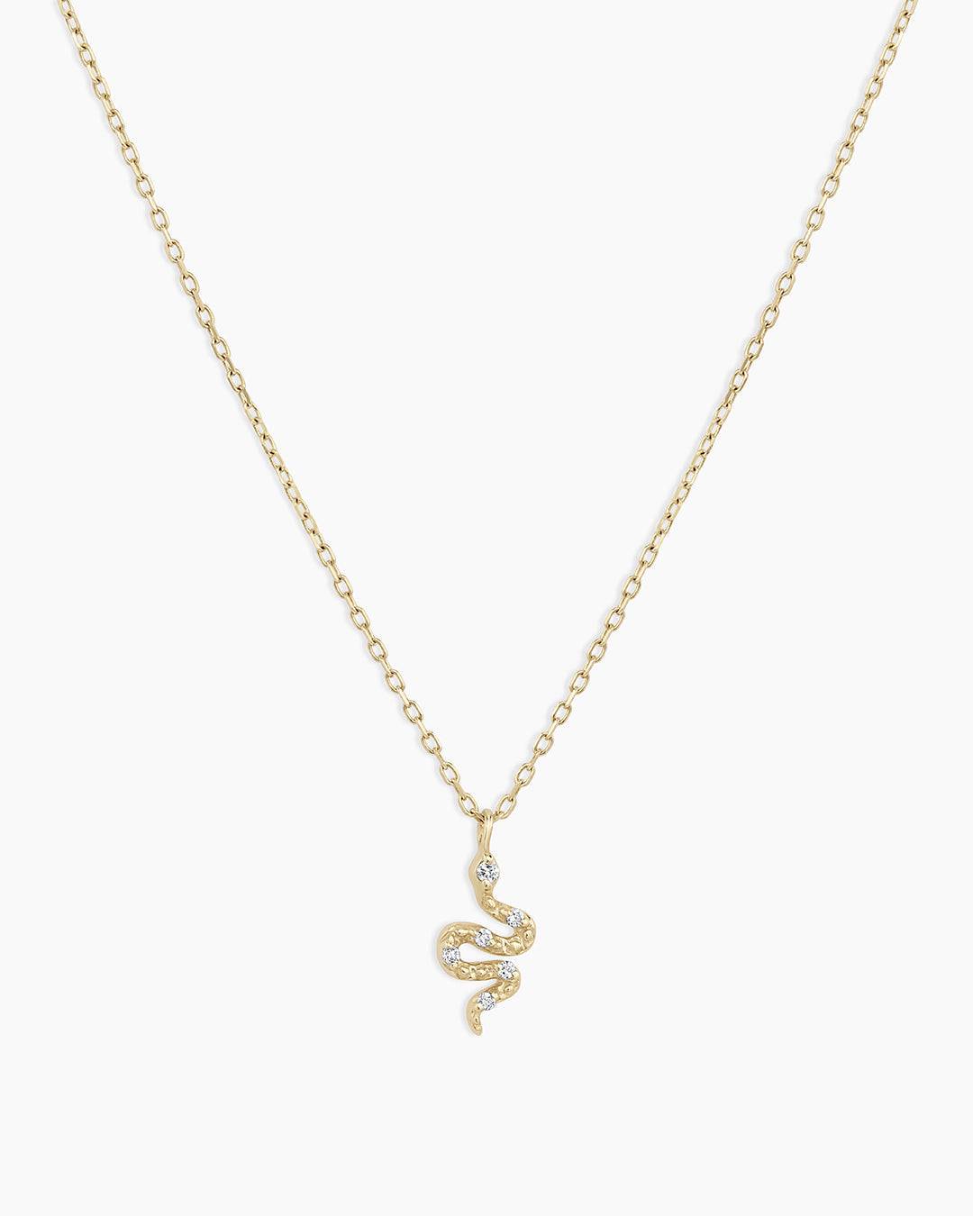 This elegant Diamond Snake Necklace showcases a stunning design and superior craftsmanship. The sparkling diamonds add a touch of luxury, while the serpent symbolizes wisdom and transformation. Made of high-quality materials, this necklace is a must-have for any fashion-forward individual. Elevate your style with this unique piece of jewelry.