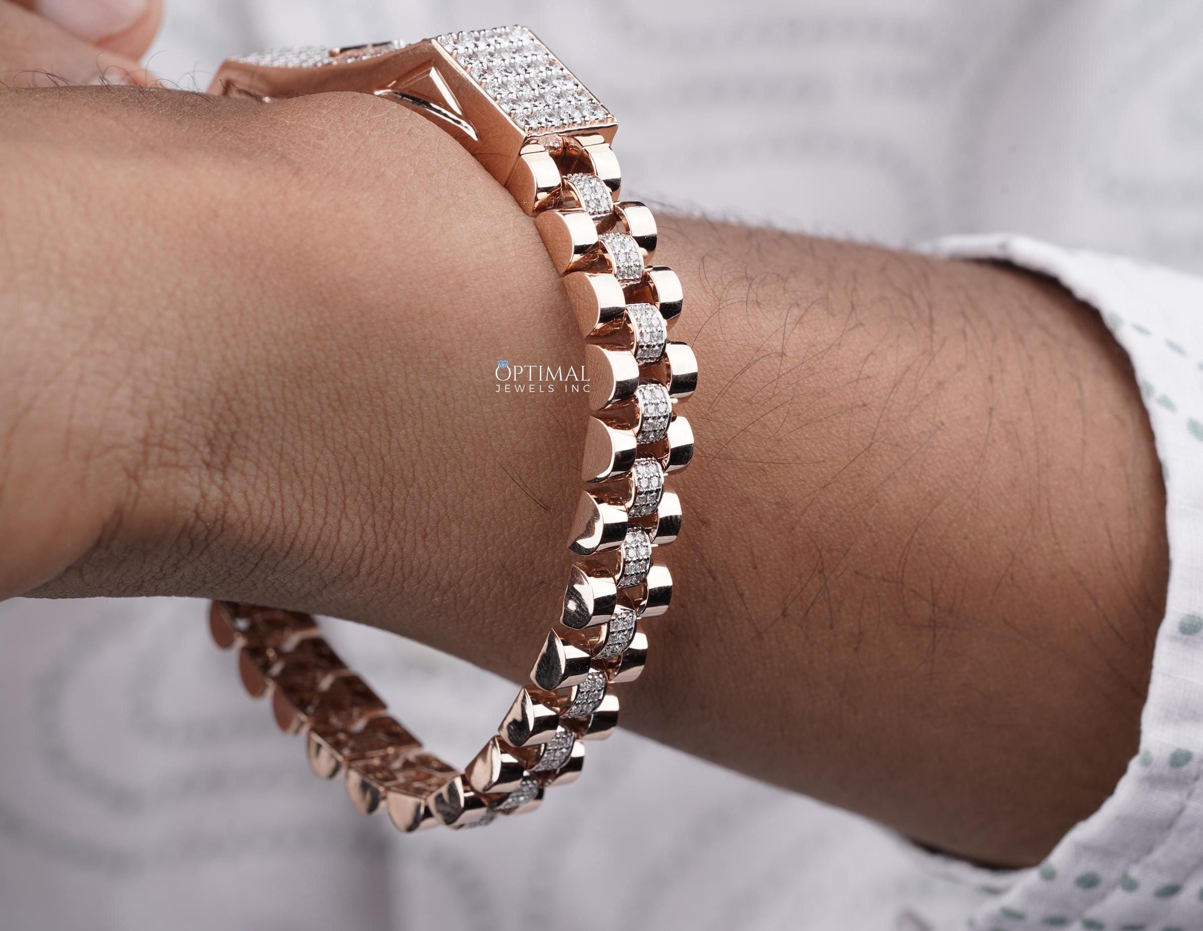 Elegant Rose Gold Cuban Link Bracelet, 4.05 CT Lab Grown Pave Diamond-Studded Bracelet, Luxury Bracelet for Jewelry Lovers, Bracelet For Him