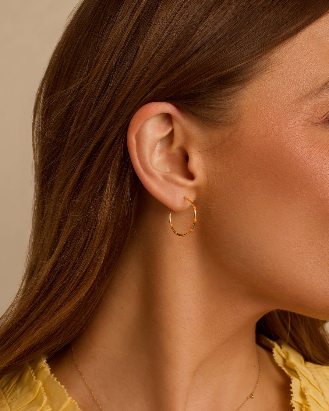 અમારા ભવ્ય કેપ્રી હૂપ્સ સાથે તમારા દેખાવને પૂર્ણ કરો. આ અદભૂત earrings કોઈપણ સરંજામ માટે સંપૂર્ણ અંતિમ સ્પર્શ છે. તેમની અનન્ય ડિઝાઇન સાથે, આ હૂપ્સ ચોક્કસ નિવેદન આપે છે અને તમારી શૈલીમાં અભિજાત્યપણુનો સ્પર્શ ઉમેરે છે. કેપ્રી હૂપ્સ વડે તમારી ફેશન ગેમમાં વધારો કરો.