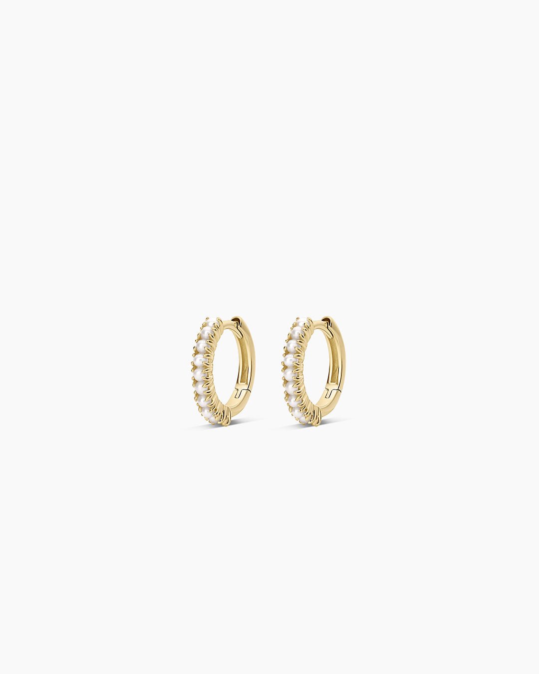 આ પર્લ રો હગીઝ કોઈપણ દાગીનાના સંગ્રહમાં અદભૂત ઉમેરો છે. વાસ્તવિક તાજા પાણીના મોતીથી બનેલા, આ હગ્ગી ઇયરિંગ્સ લાવણ્ય અને અભિજાત્યપણુ આપે છે. કોઈપણ પ્રસંગ માટે યોગ્ય સહાયક, આ આલિંગન સર્વતોમુખી છે અને કોઈપણ પોશાકને સહેલાઈથી ઉન્નત બનાવે છે.