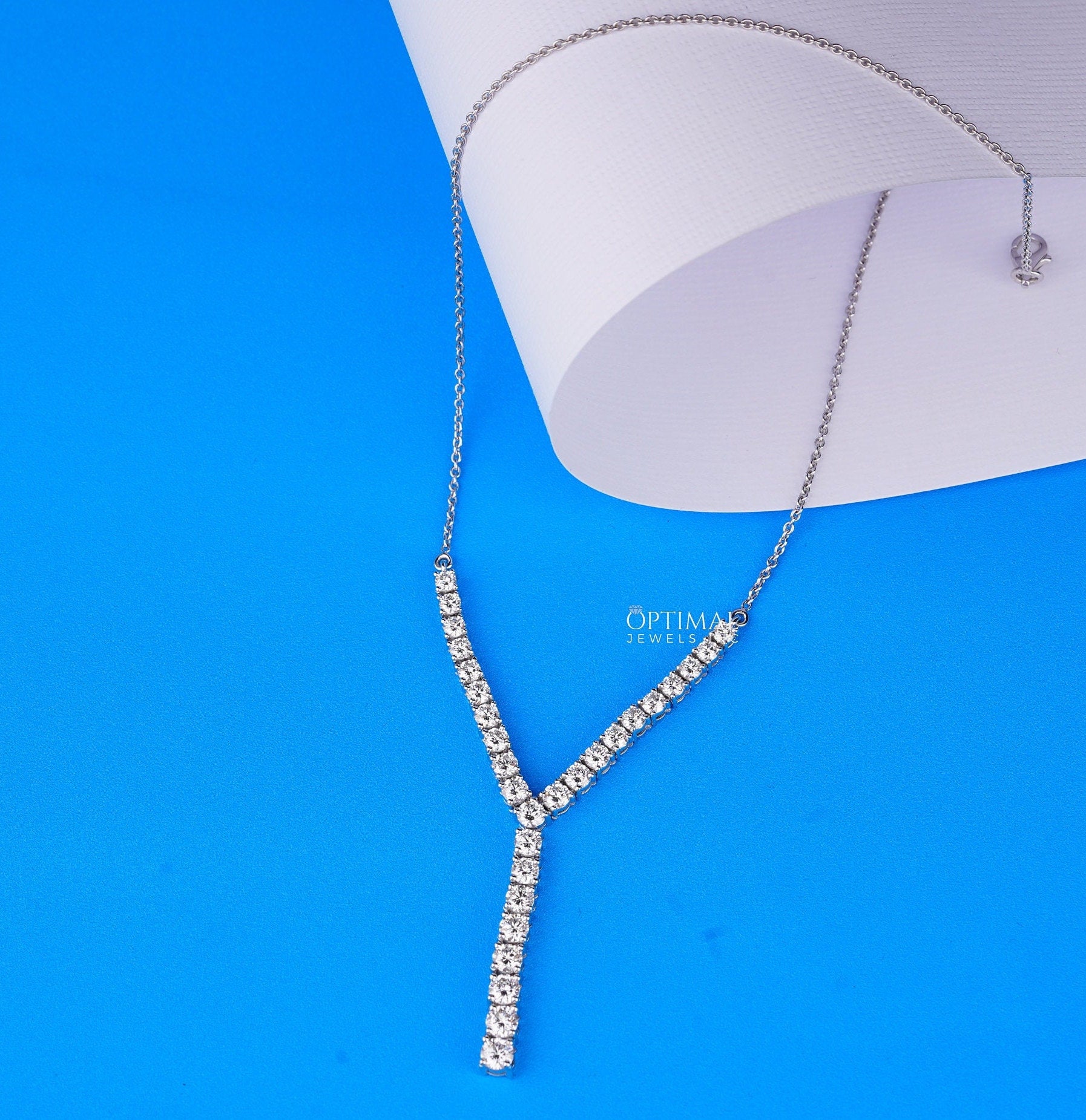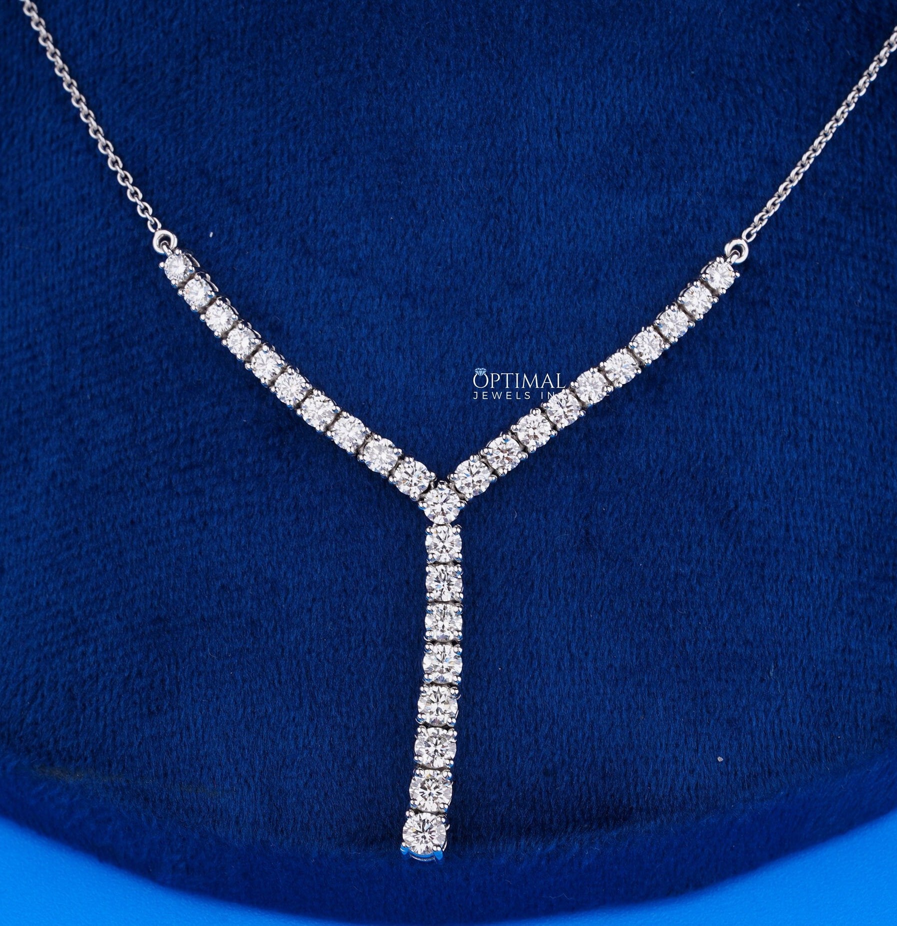 એન્ટિક Y-આકારનો ડાયમંડ ટેનિસ નેકલેસ, 3.67 Ctw રાઉન્ડ કટ લેબ-ગ્રોન ડાયમંડ, વ્હાઇટ ગોલ્ડ ચેઇન નેકલેસ, મહિલાઓ માટે ભવ્ય જ્વેલરી પીસ
