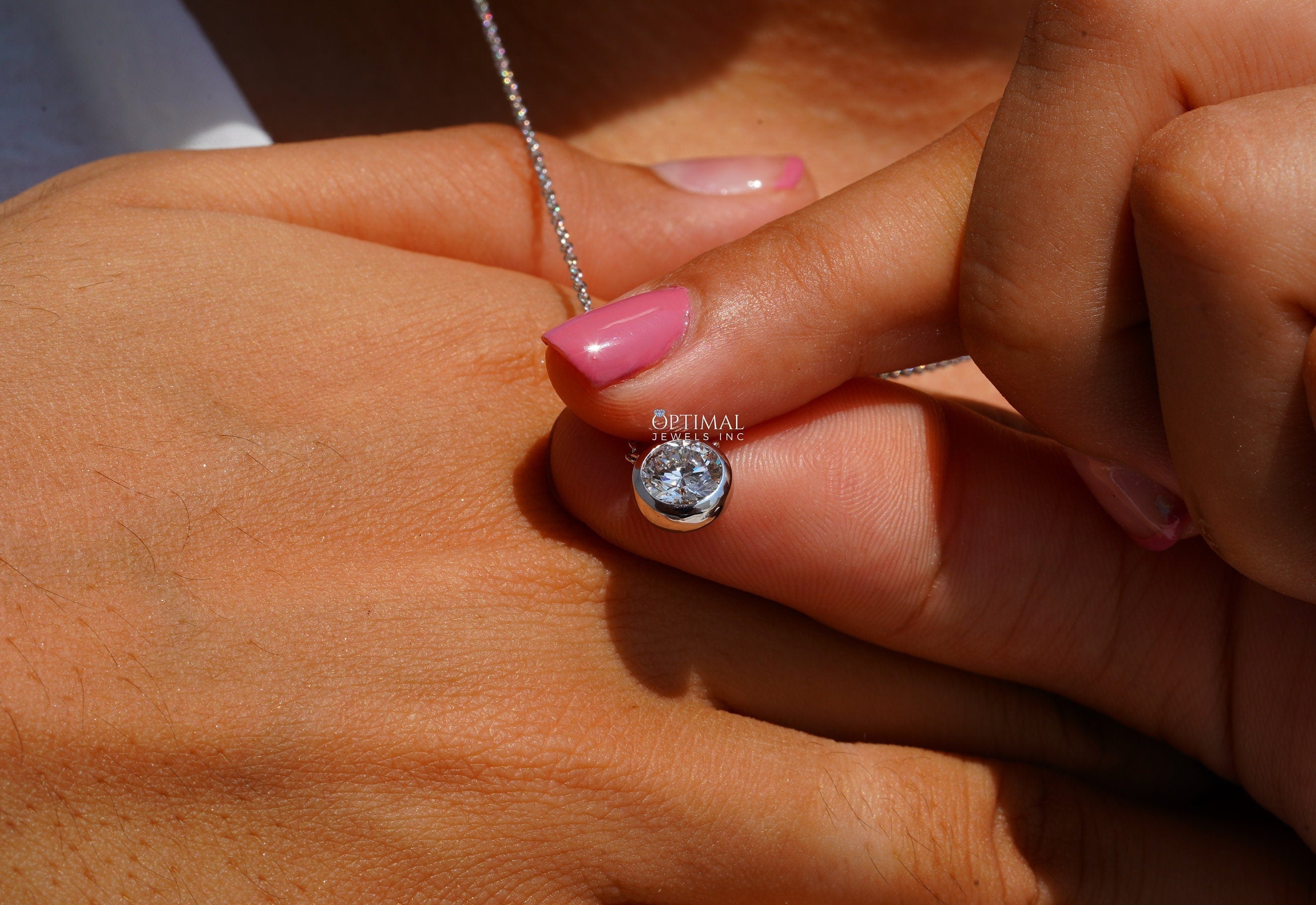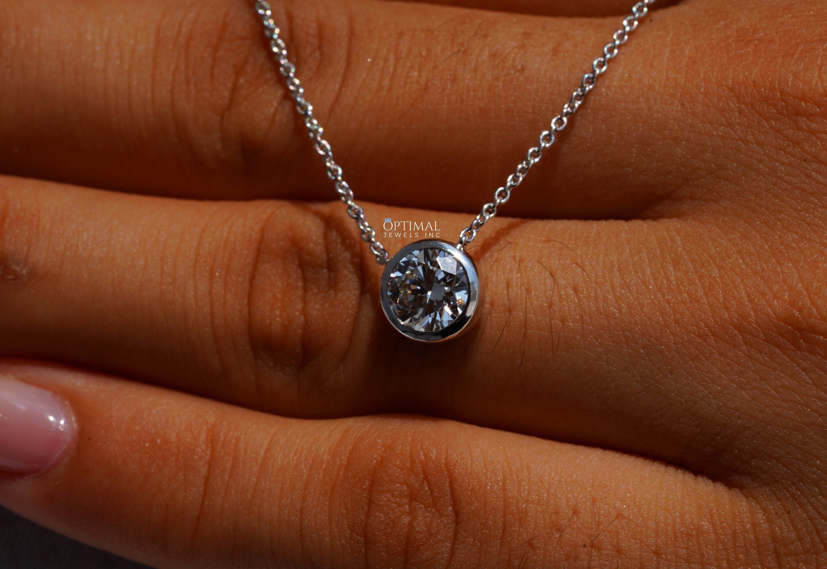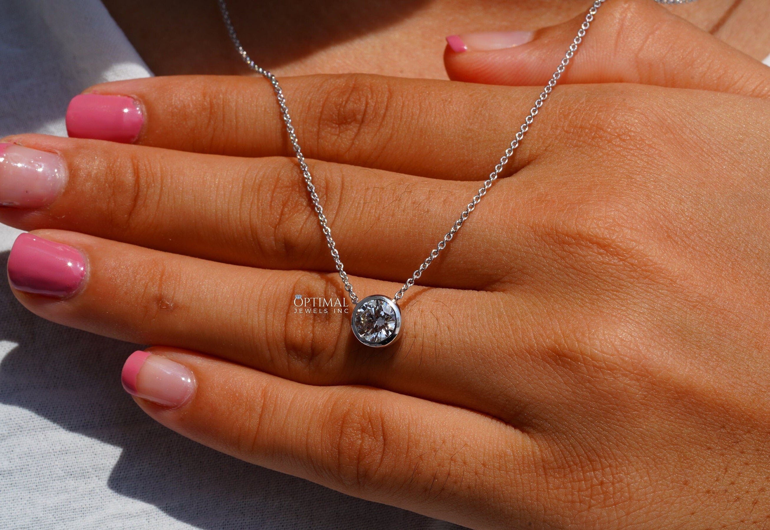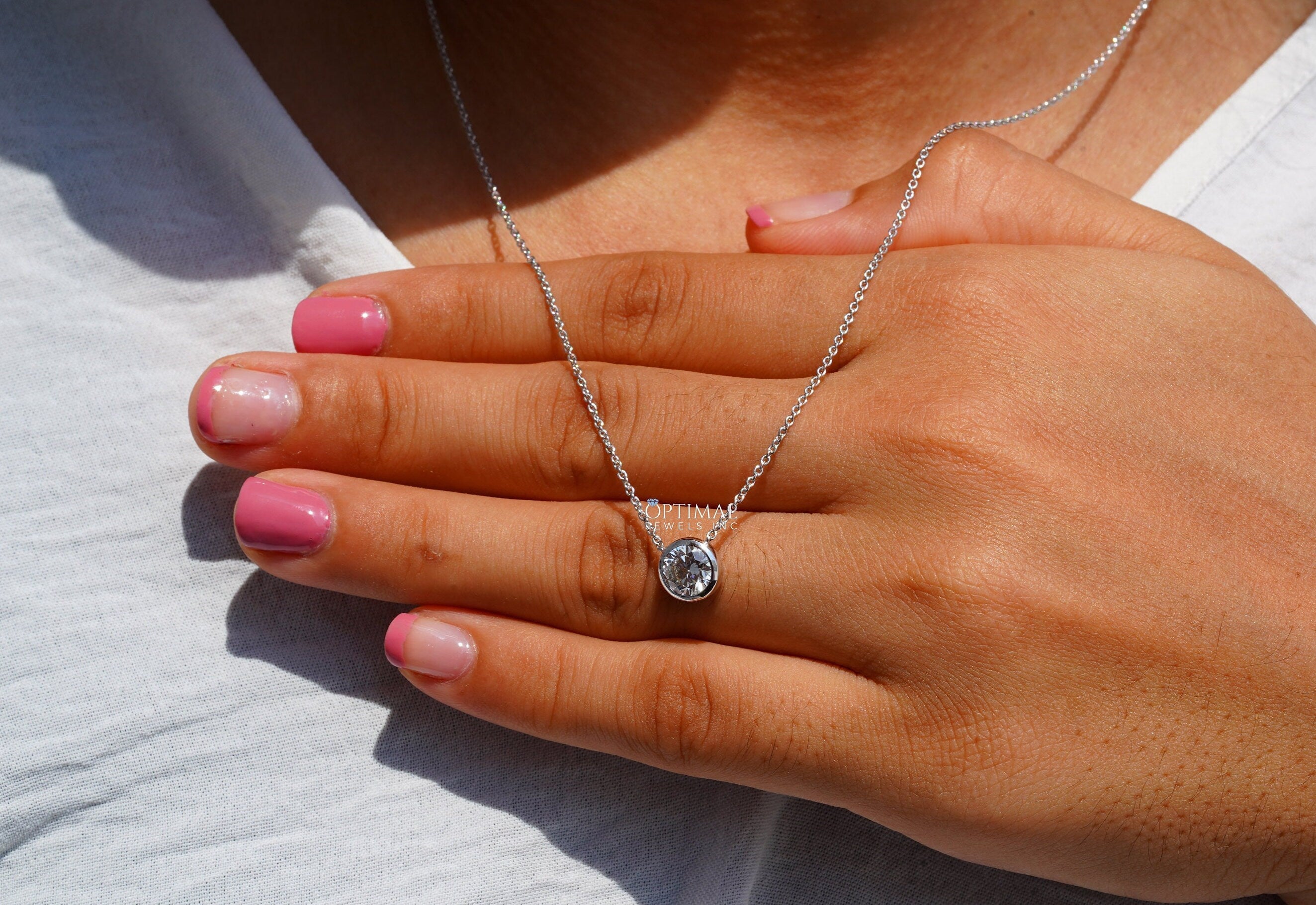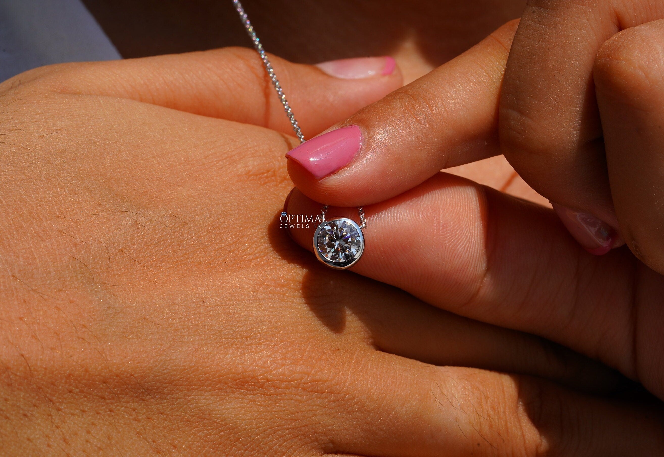 ક્લાસિક બેઝલ સેટ લેબ ગ્રોન ડાયમંડ નેકલેસ 1.06 Ct રાઉન્ડ કટ ડાયમંડ સોલિટેર પેન્ડન્ટ, 18” વ્હાઇટ ગોલ્ડ ચેઇન, તેના માટે ભવ્ય ઘરેણાંની ભેટ