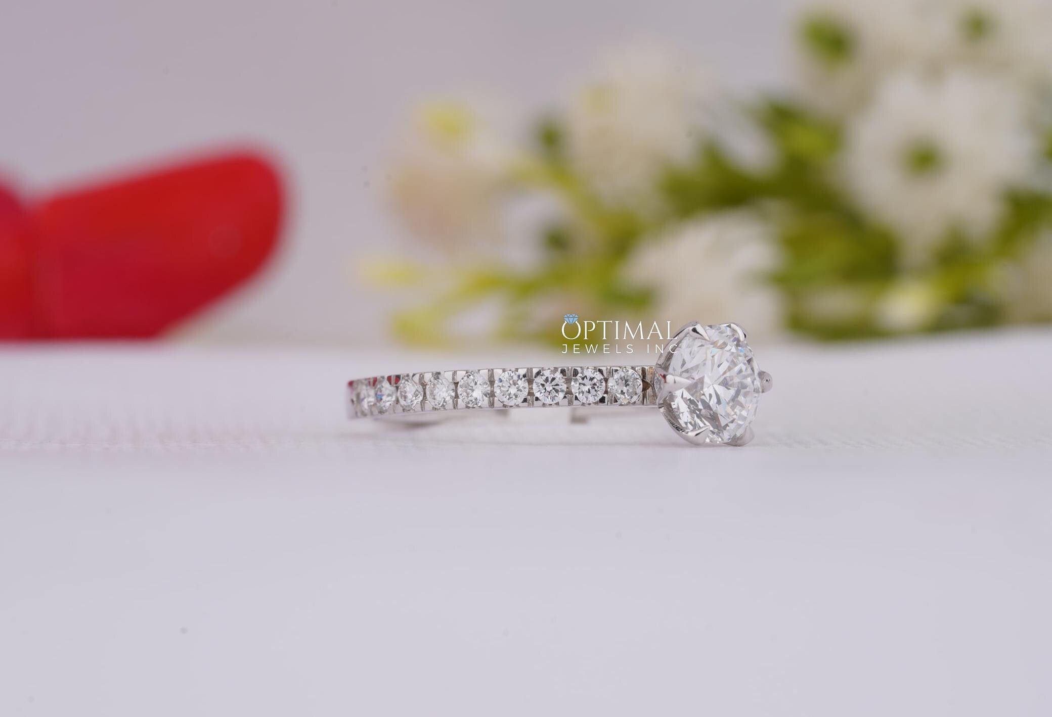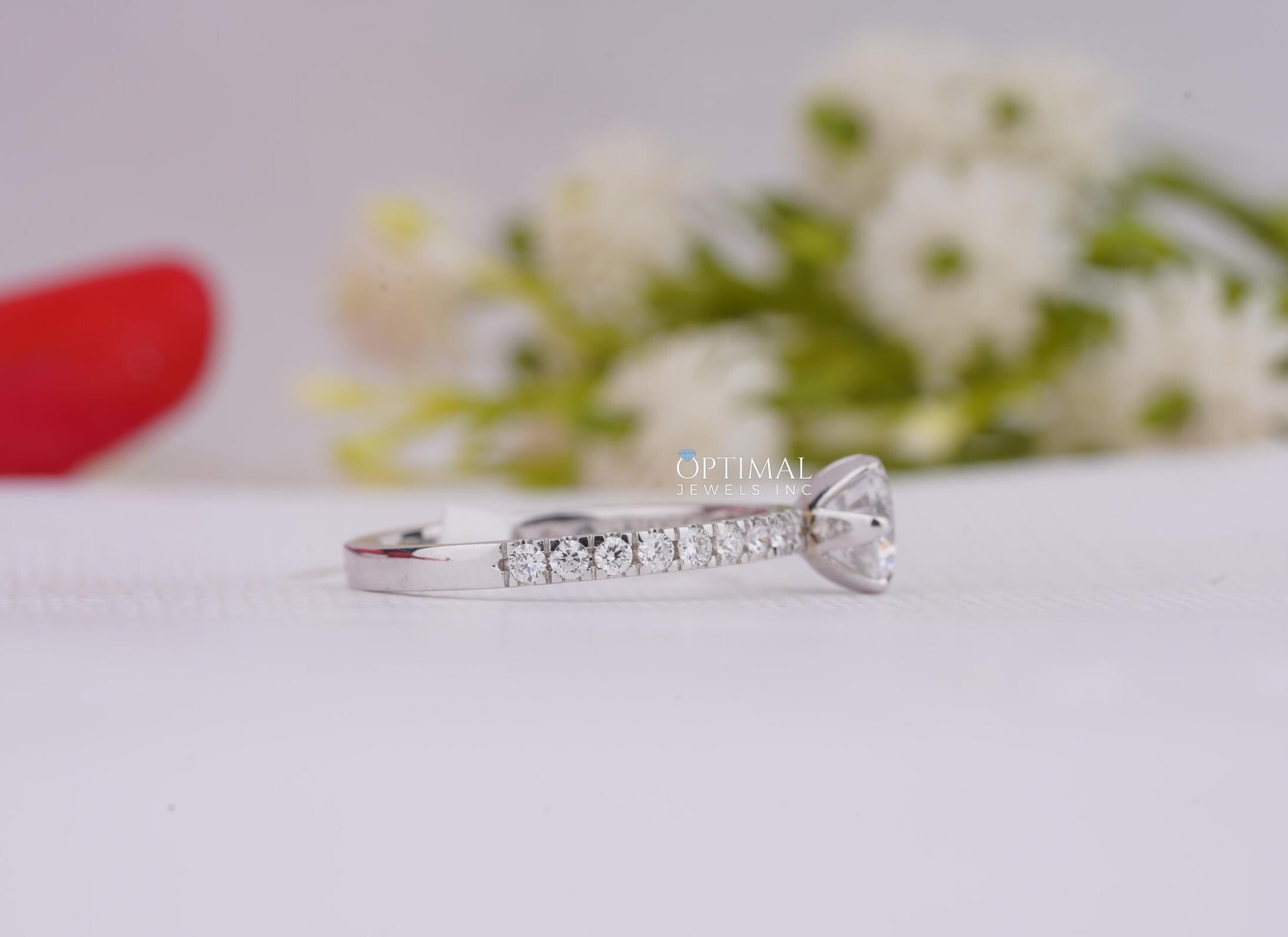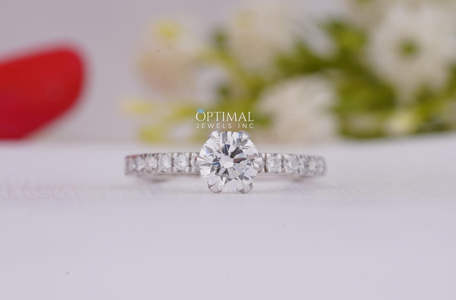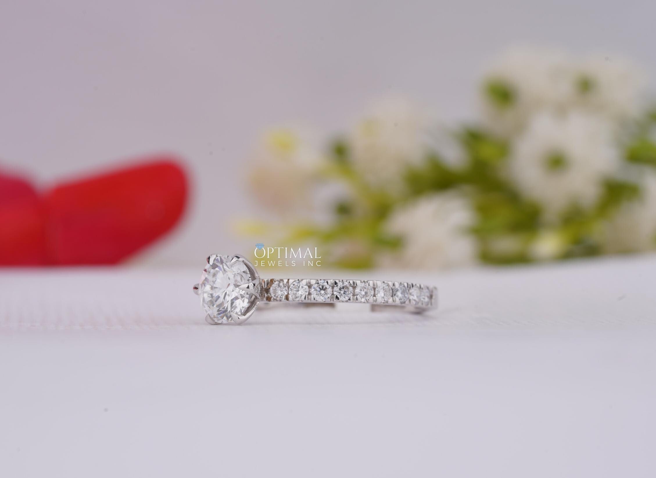 ક્લસ્ટર યુનિક 1.02 Ctw રાઉન્ડ લેબ ડાયમંડ રિંગ 14K સોલિડ વ્હાઇટ ગોલ્ડ એન્ગેજમેન્ટ રિંગ લેબ તેના માટે પેવ સેટ રિંગ એનિવર્સરી રિંગ ગિફ્ટ બનાવી