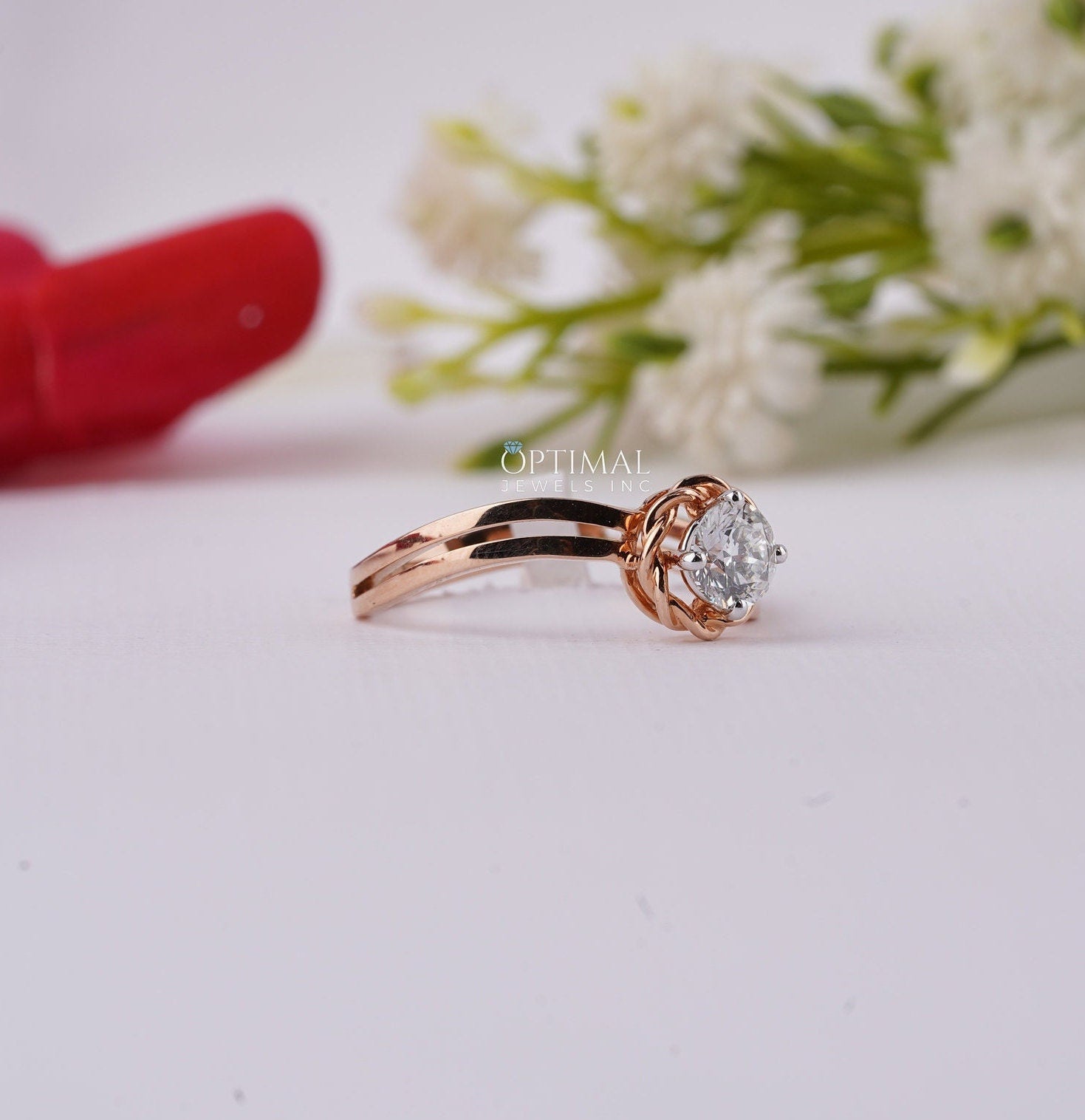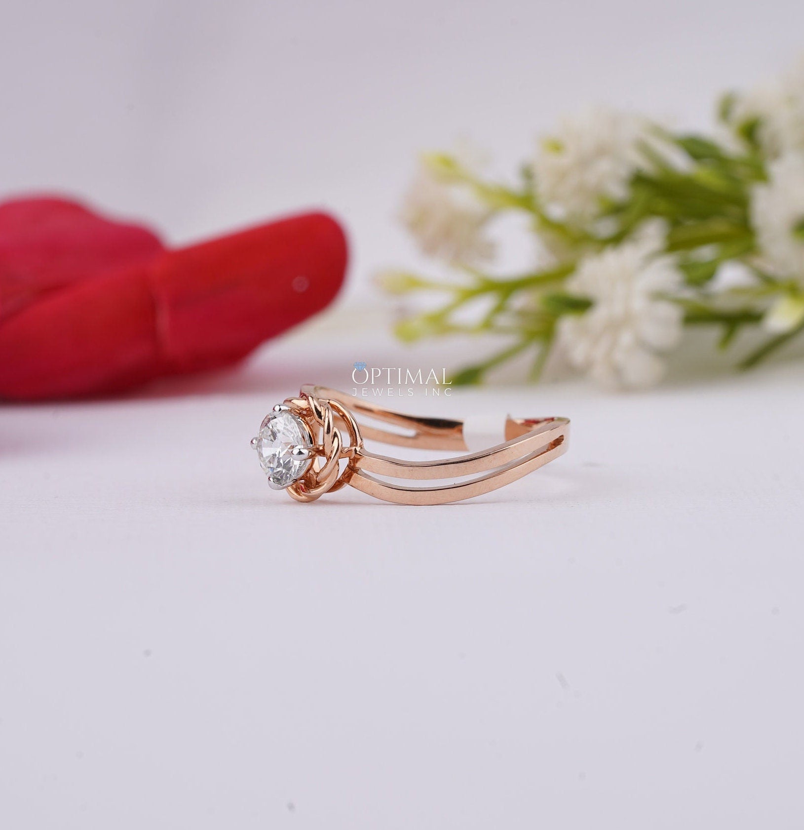 ડેન્ટી લેબ ગ્રોન ડાયમંડ રિંગ 0.47 Ctw ફ્લોરલ ફરસી સેટ સગાઈની રિંગ ડબલ બેન્ડ સોલિટેર રિંગ સોલિડ રોઝ ગોલ્ડ પ્રોમિસ રિંગ તેના માટે