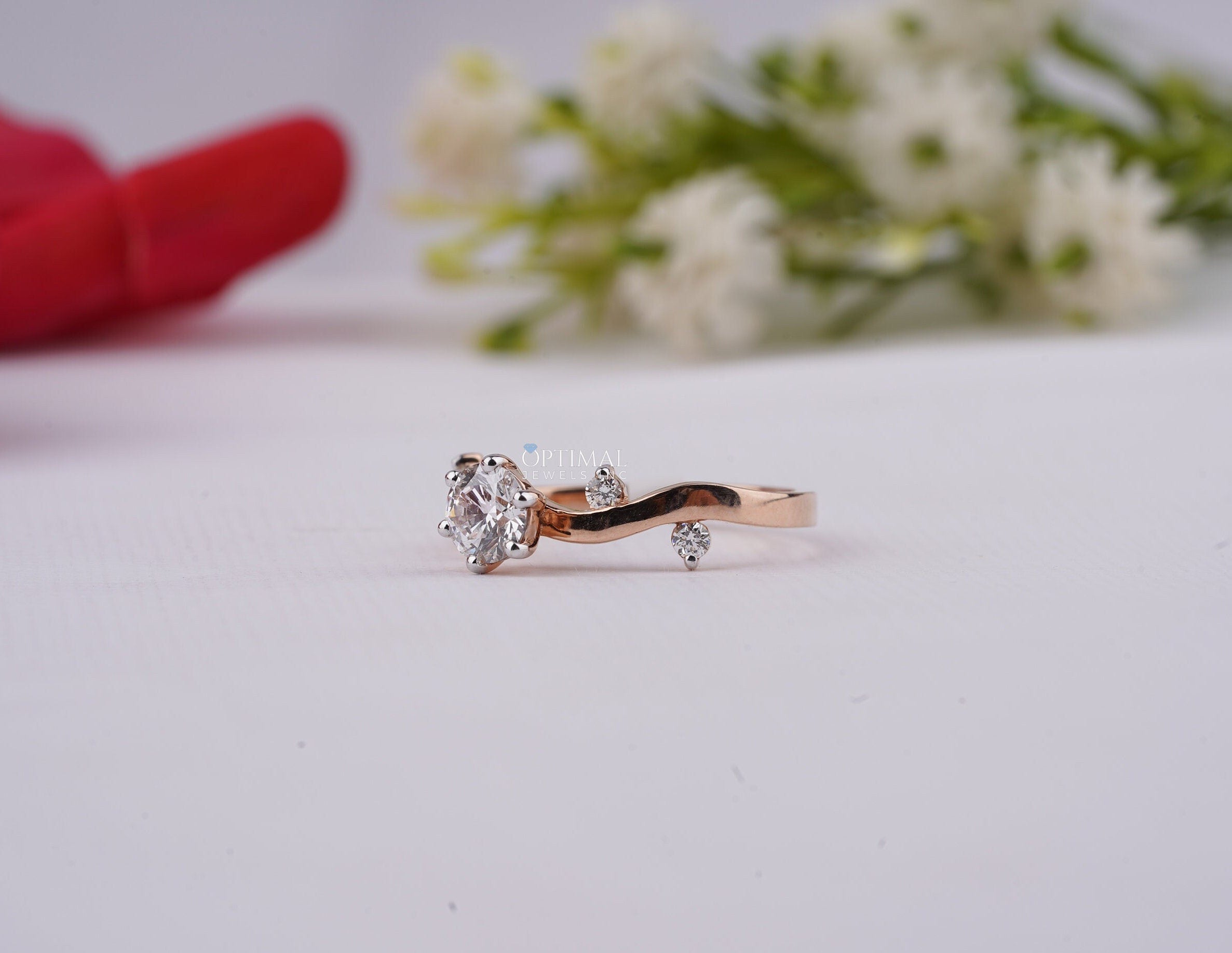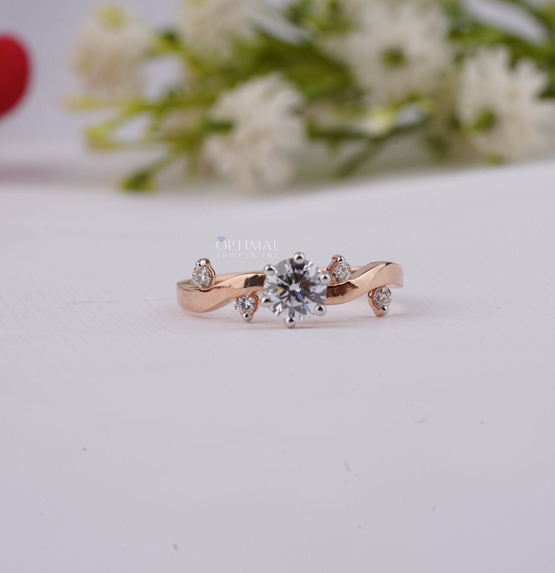 પાંચ સ્ટોન લેબ ડાયમંડ રીંગ 0.67 Ctw રાઉન્ડ કટ લેબ ઉગાડવામાં આવેલ ડાયમંડ રીંગ રોઝ ગોલ્ડ વેડિંગ રીંગ સોલિટેર એન્ગેજમેન્ટ રીંગ એનિવર્સરી ગીફ્ટ