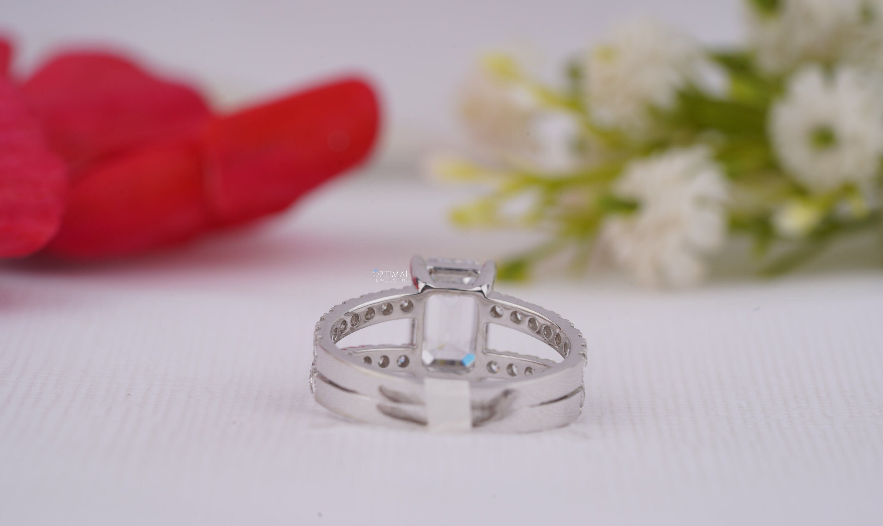 IGI પ્રમાણિત 2.74 Ctw એમરાલ્ડ કટ લેબ ઉગાડવામાં આવેલી ડાયમંડ રિંગ 18K વ્હાઇટ ગોલ્ડ મહિલા સગાઈની રિંગ ડબલ બેન્ડ પેવ સેટ લગ્નની વીંટી તેના માટે