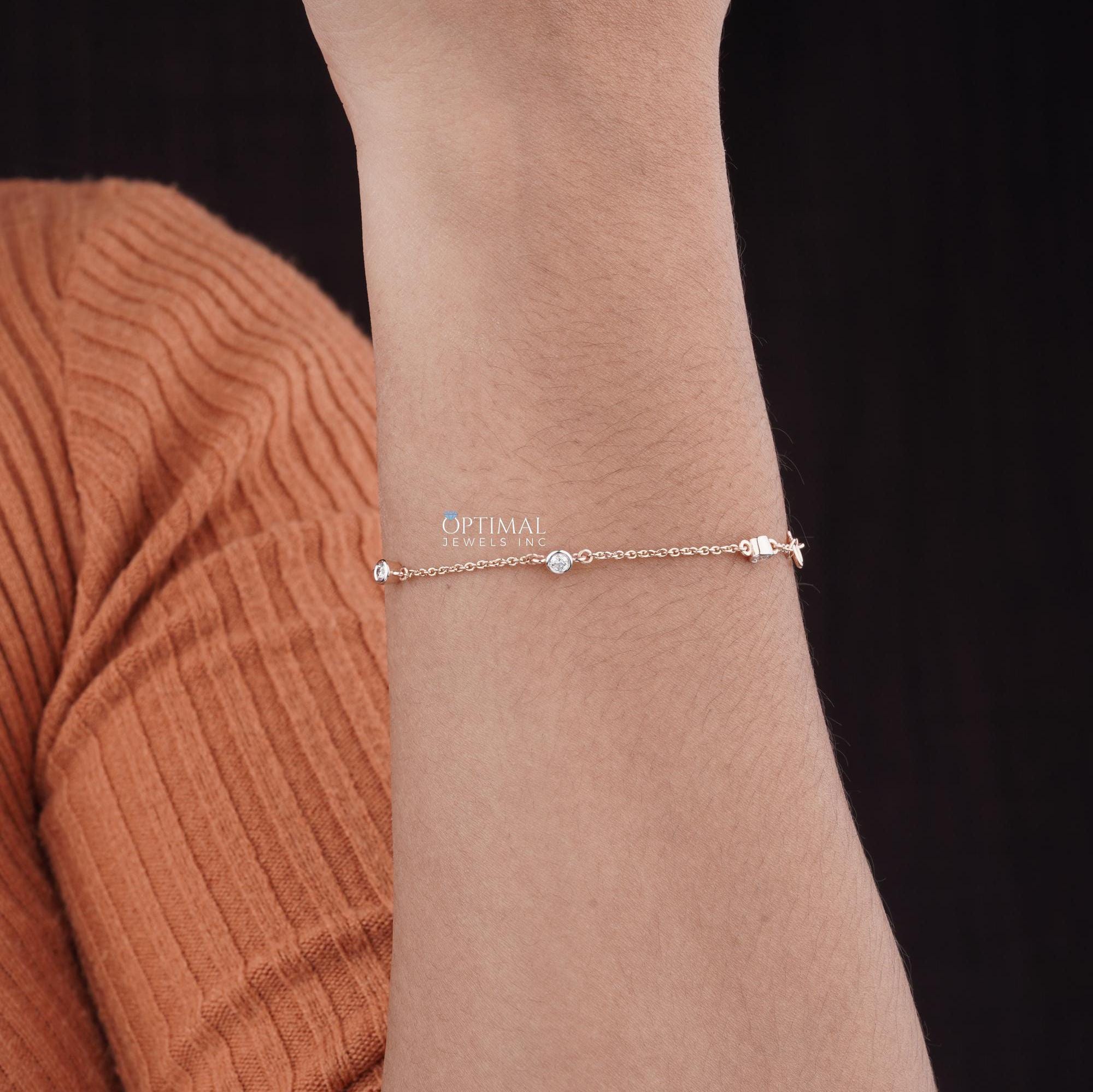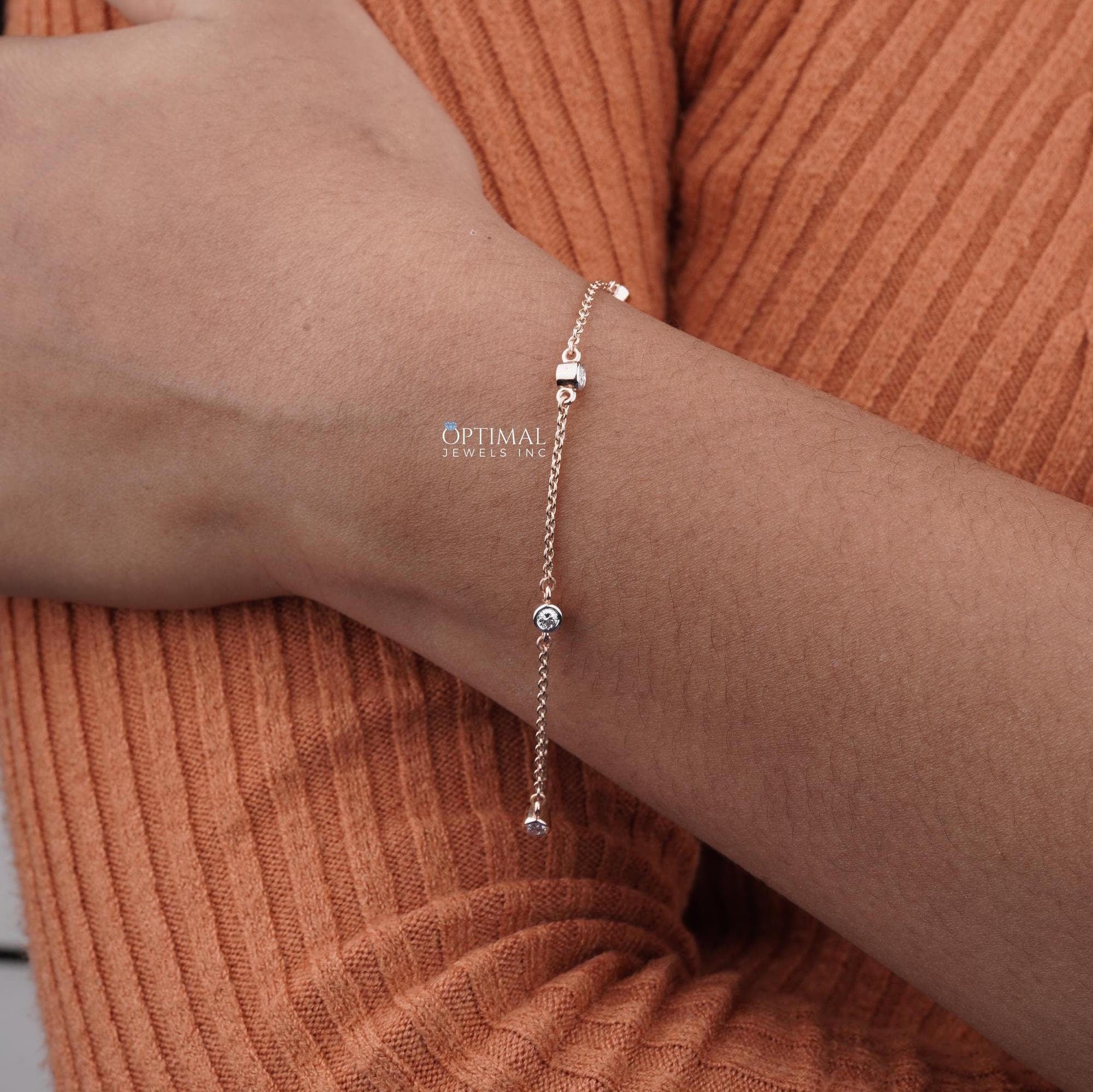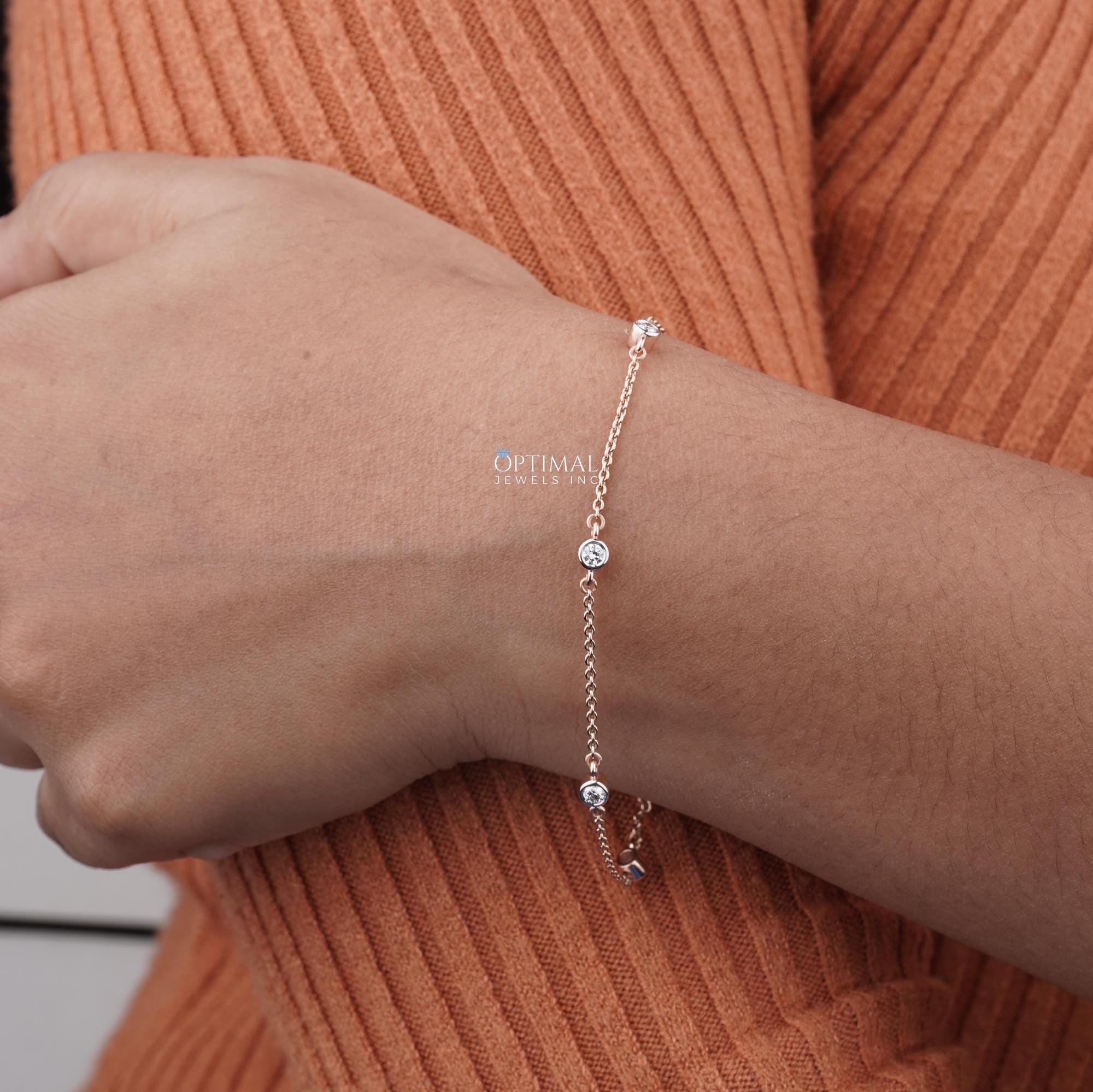 લેબ-ગ્રોન ડાયમંડ ચેઈન બ્રેસલેટ, 0.50 CTW રાઉન્ડ કટ ડાયમંડ બ્રેસલેટ, ફરસી સેટ રોઝ ગોલ્ડ બ્રેસલેટ, સ્ટેશન બ્રેસલેટ, પ્રેમ માટે વિશેષ ભેટ
