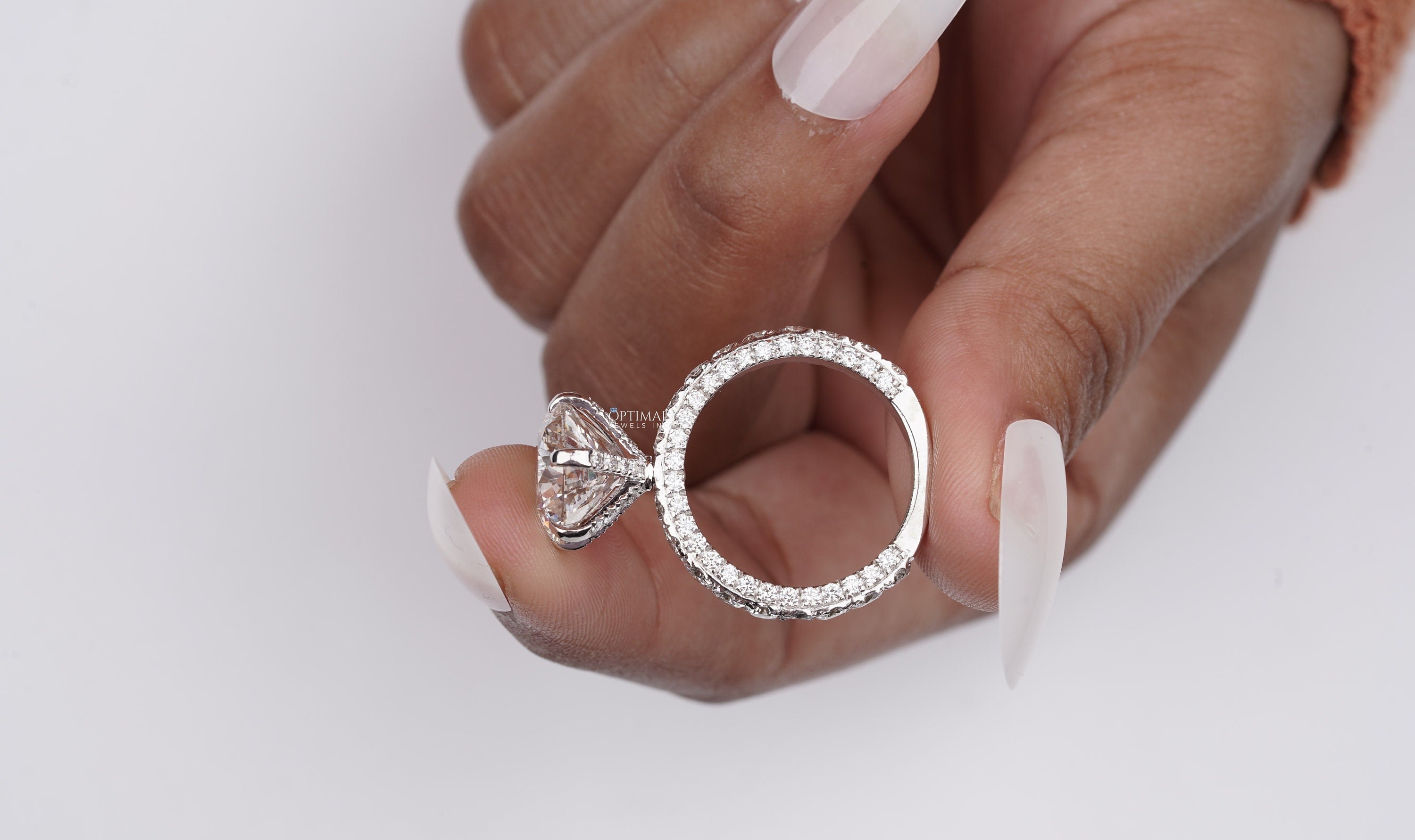 મેજેસ્ટીક લેબ રાઉન્ડ કટ ડાયમંડ રીંગ 6.35 કેરેટ IGI પ્રમાણિત વેડિંગ રીંગ પેવ બેન્ડ 18K વ્હાઇટ ગોલ્ડ રીંગ ગ્રાન્ડ અને લક્ઝુરિયસ સ્ટેટમેન્ટ રીંગ