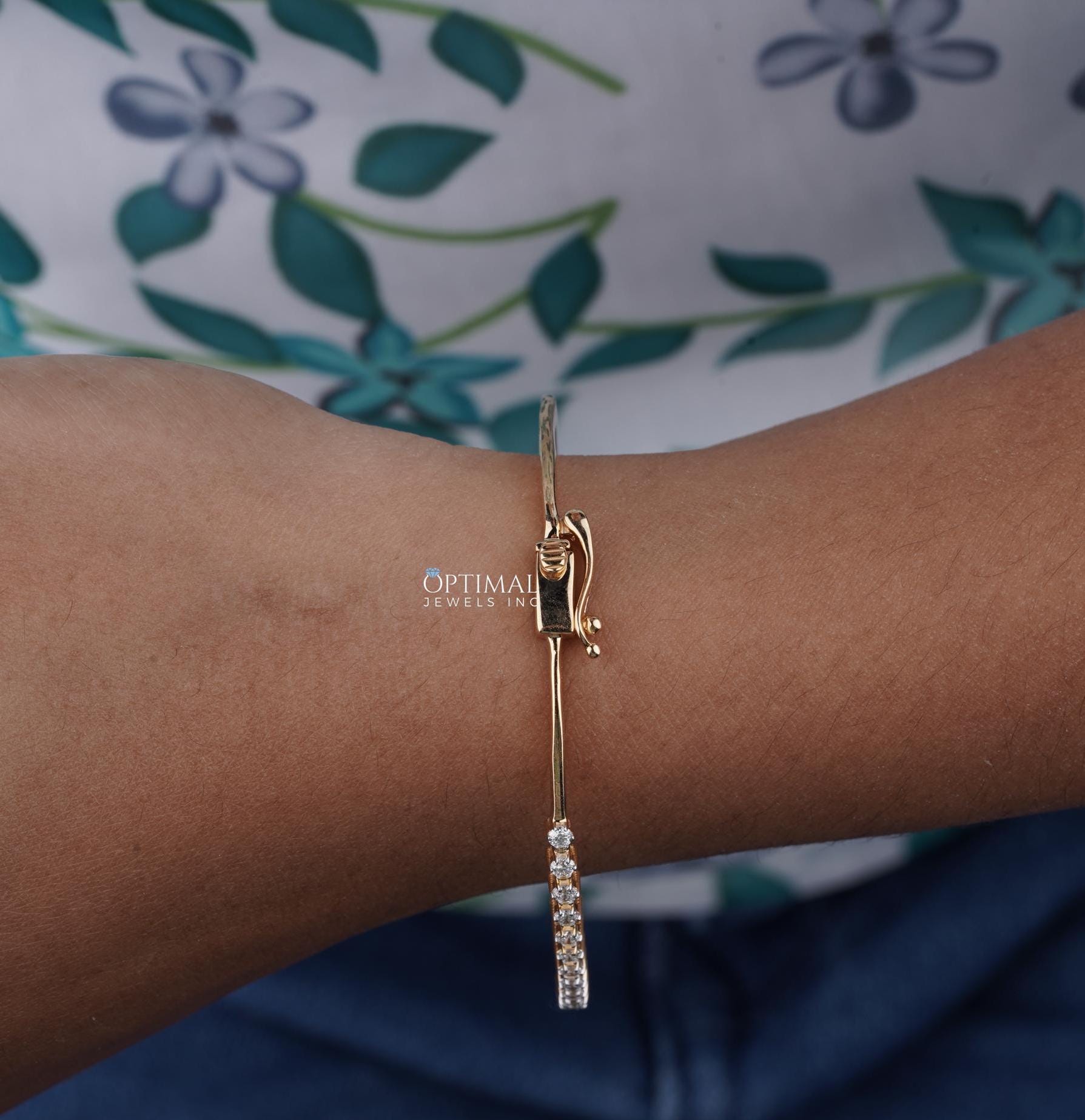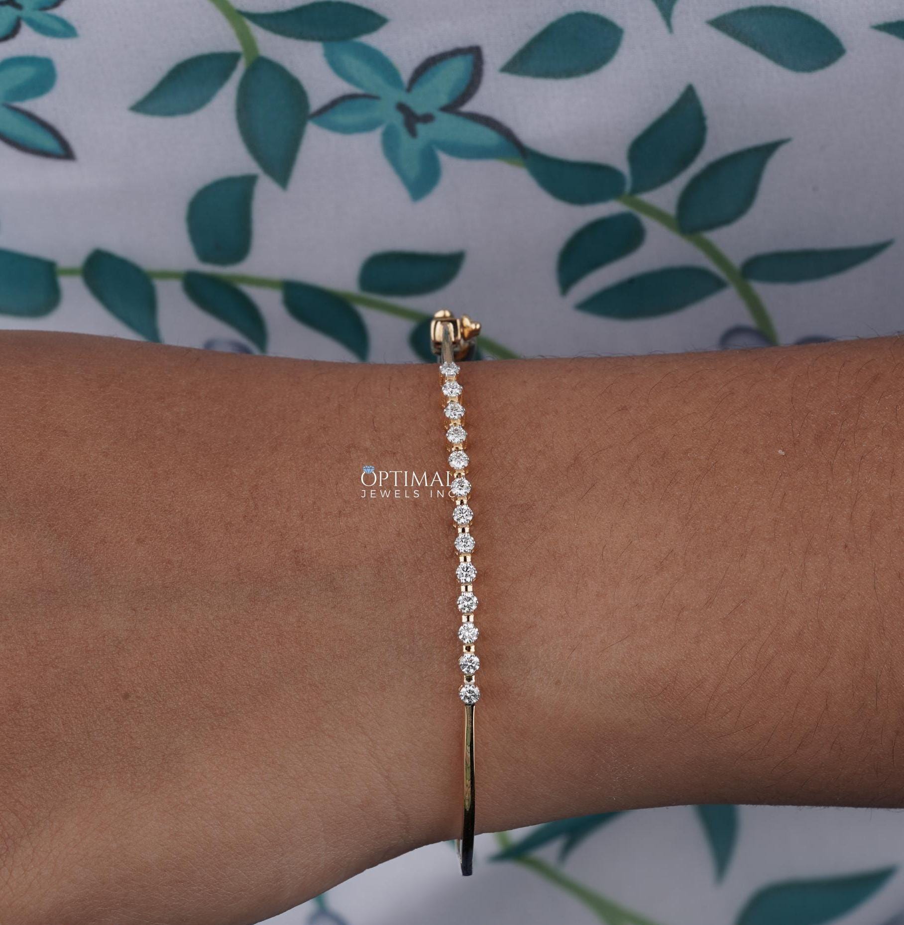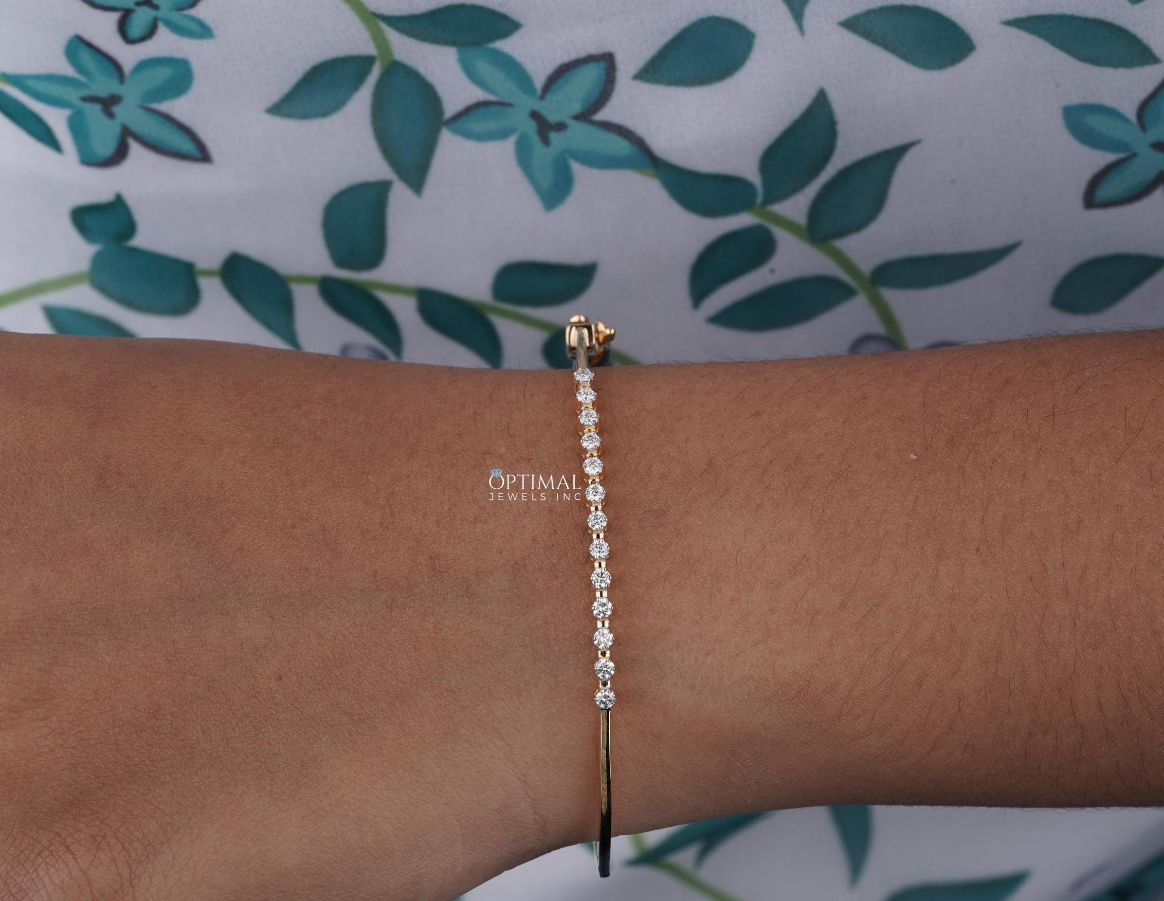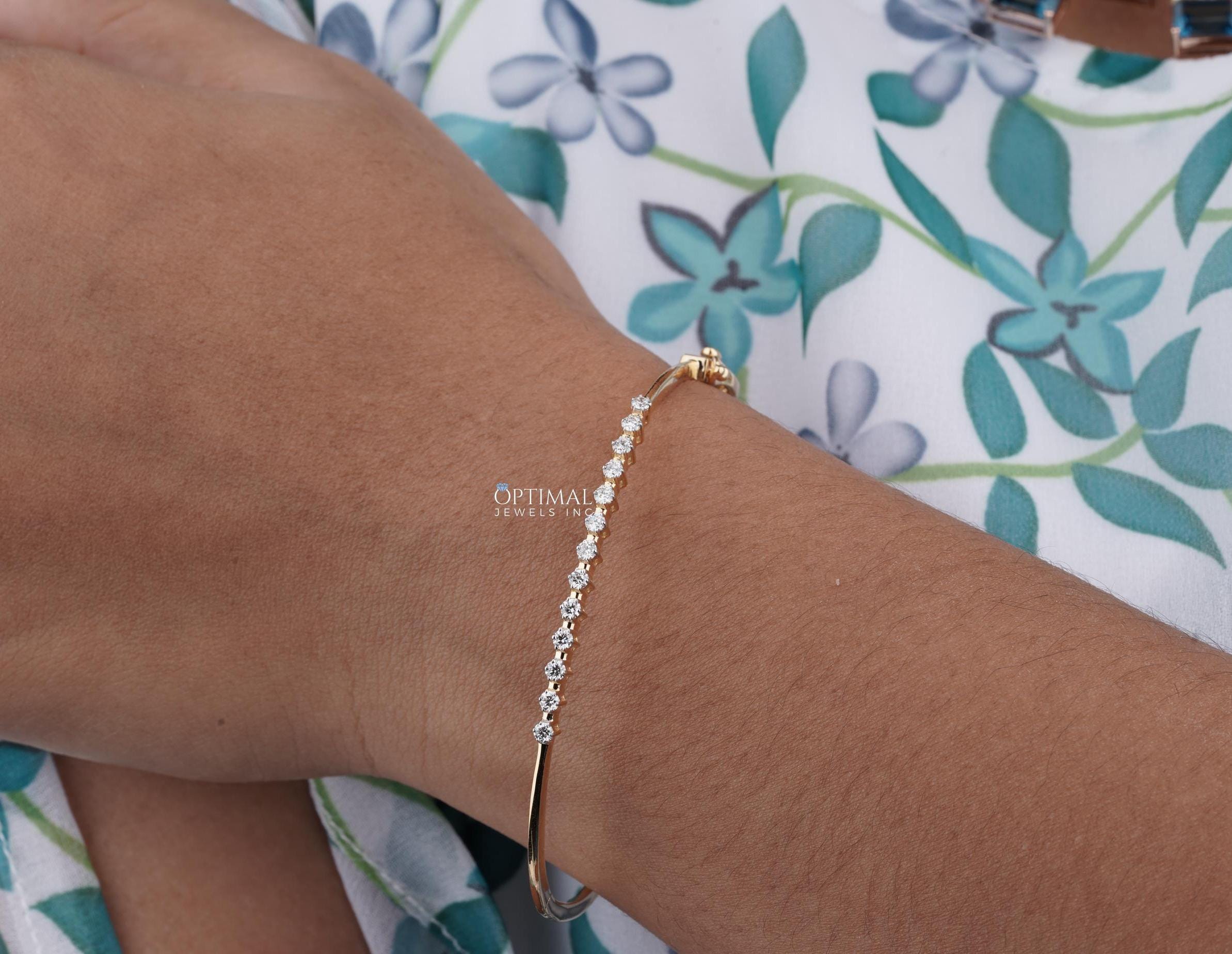 મિનિમેલિસ્ટ લેબ-ગ્રોન ડાયમંડ બ્રેસલેટ, 0.80 CTW રાઉન્ડ કટ ડાયમંડ બ્રેસલેટ, 14K યલો ગોલ્ડ બ્રેસલેટ, પ્રસંગોપાત પહેરો બ્રેસલેટ, મહિલાઓ માટે ભેટ