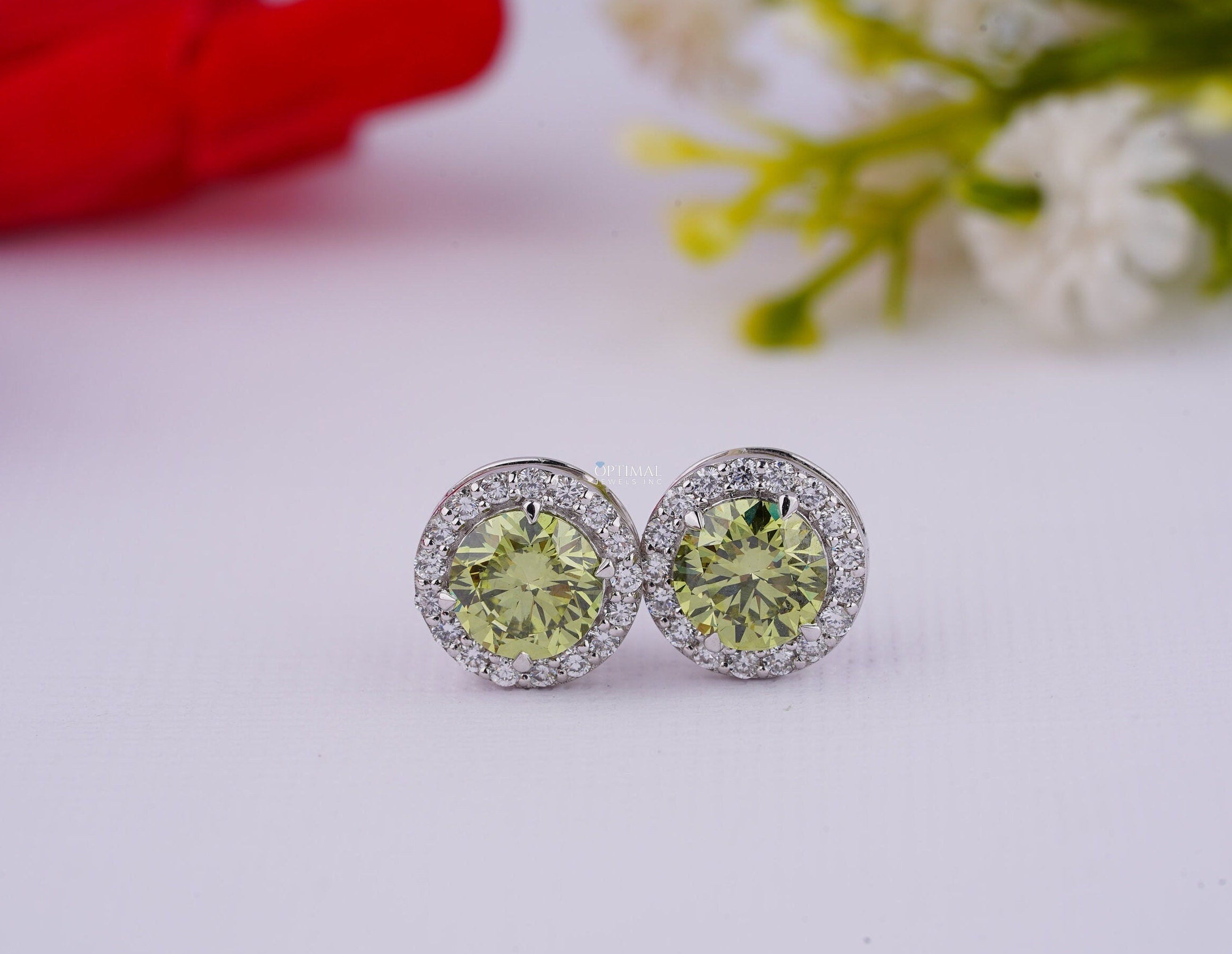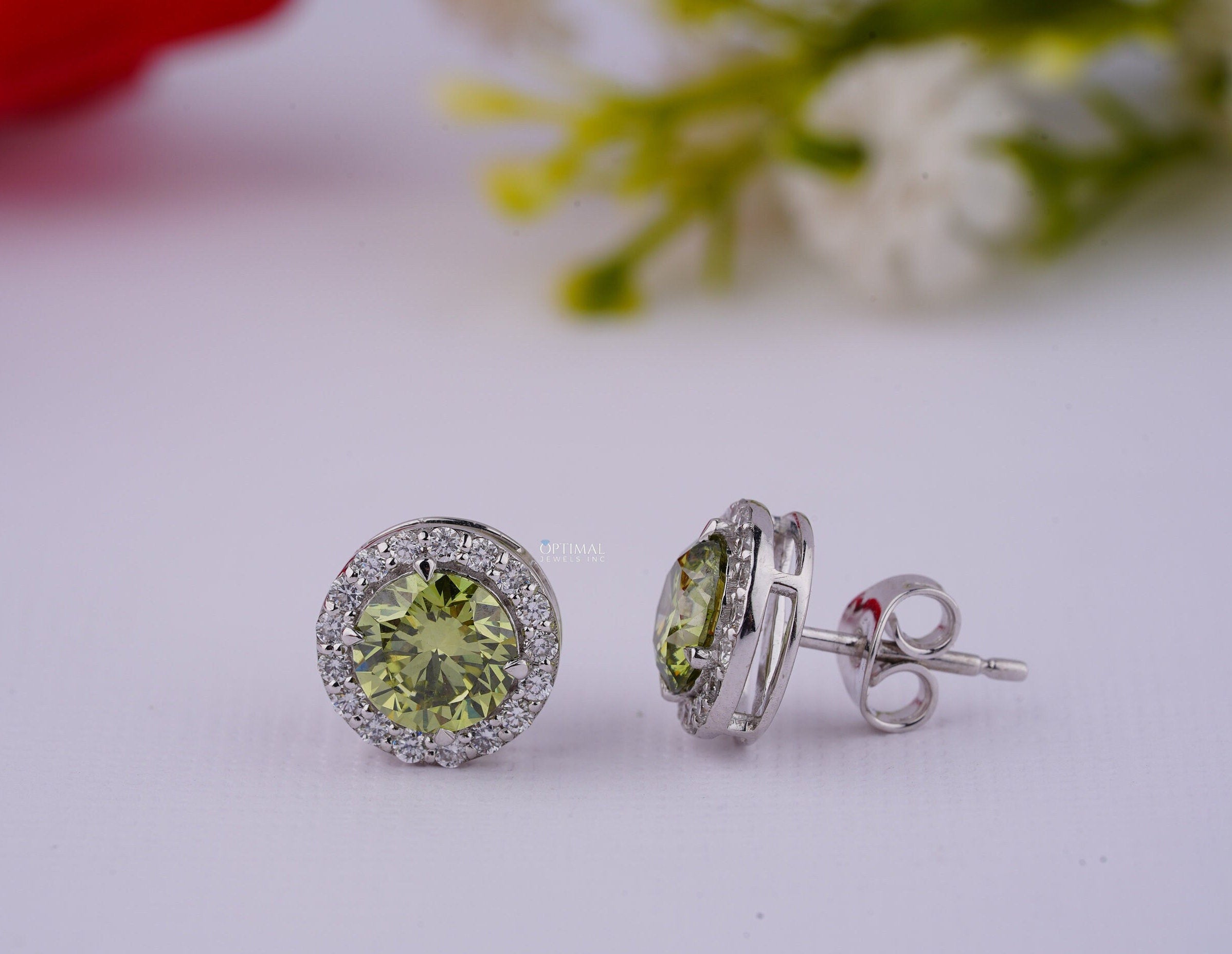 મિન્ટ ગ્રીન રાઉન્ડ લેબ ડાયમંડ ઇયરિંગ્સ 2.40 Ctw IGI સર્ટિફાઇડ હેલો ડાયમંડ ઇયરિંગ વ્હાઇટ ગોલ્ડ સ્ટડ એરિંગ મહિલાઓ માટે તેણીની વર્ષગાંઠની ભેટ માટે