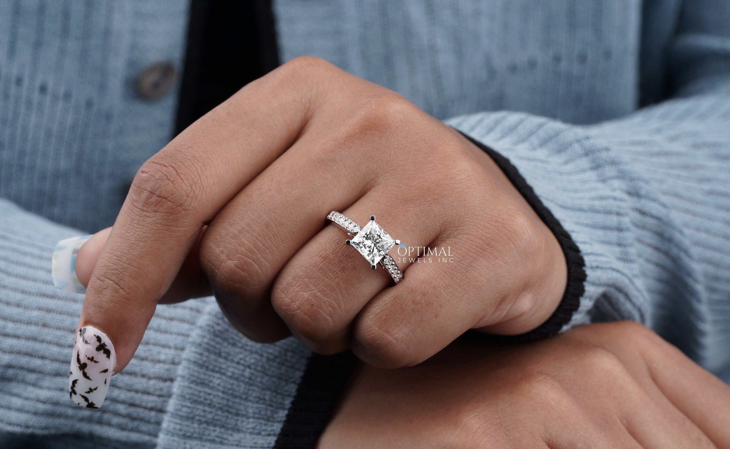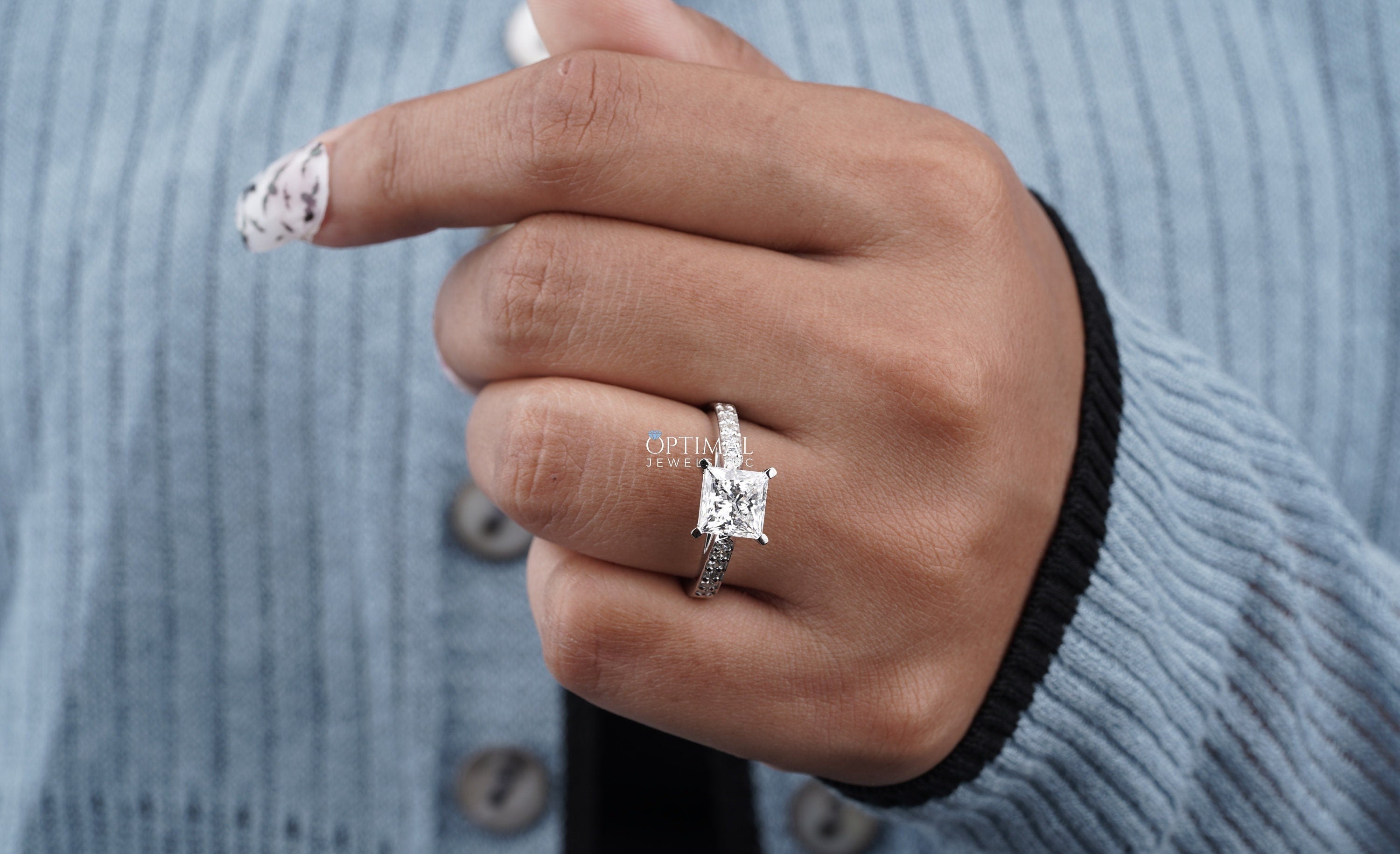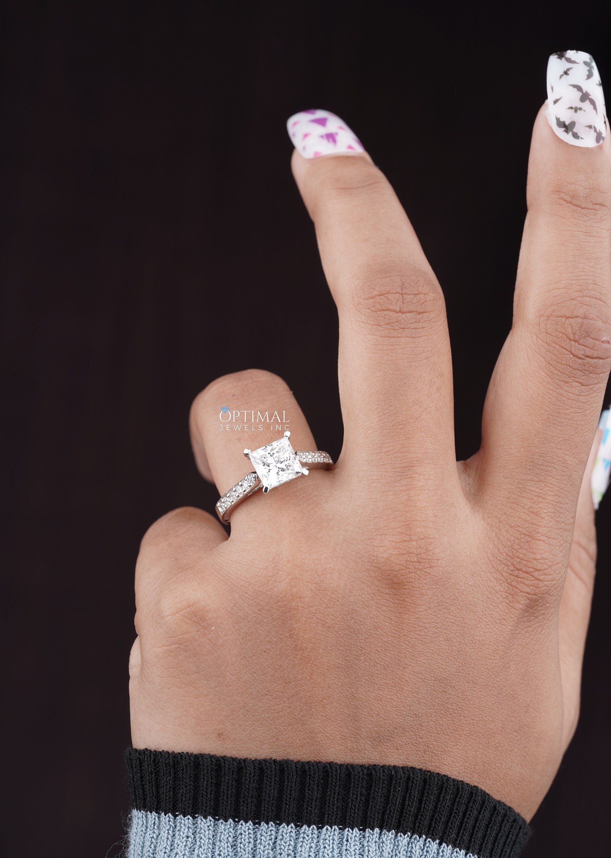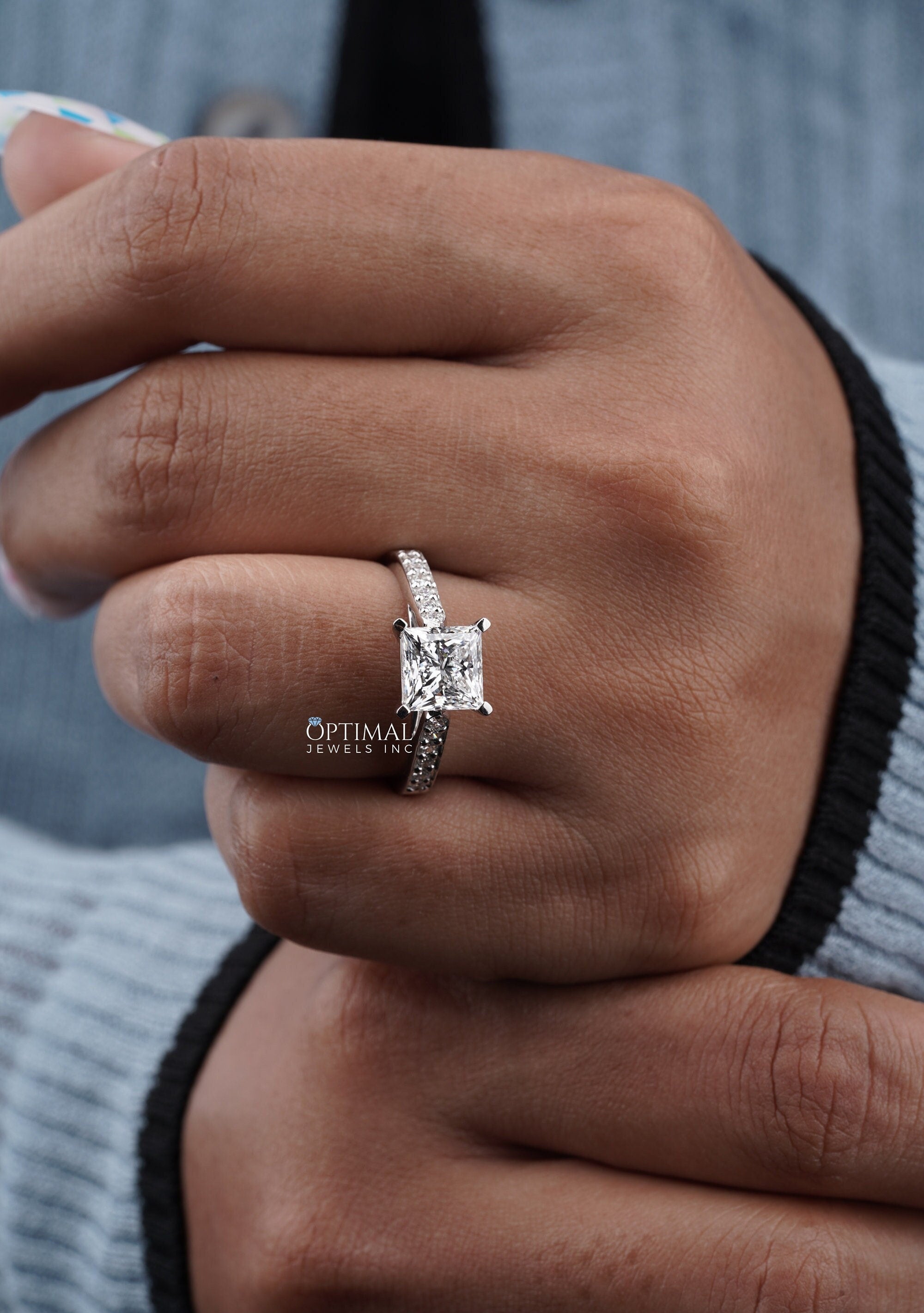 પ્રિન્સેસ કટ લેબ ડાયમંડ રીંગ 2.00 Ctw IGI સર્ટિફાઇડ વ્હાઇટ ગોલ્ડ વેડિંગ બેન્ડ પેવ સેટ અદભૂત સ્પાર્કલ તેના માટે તમારા ખાસ પ્રસંગ માટે