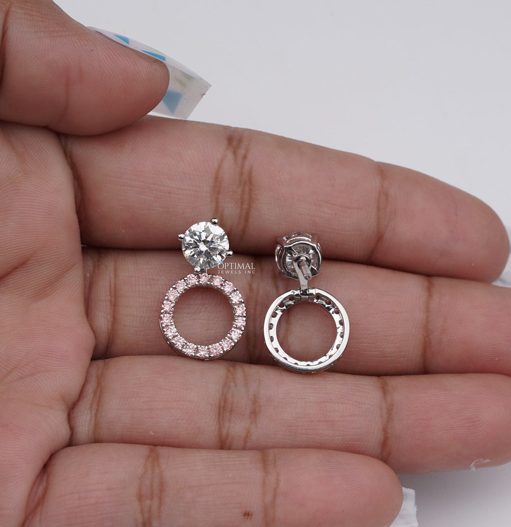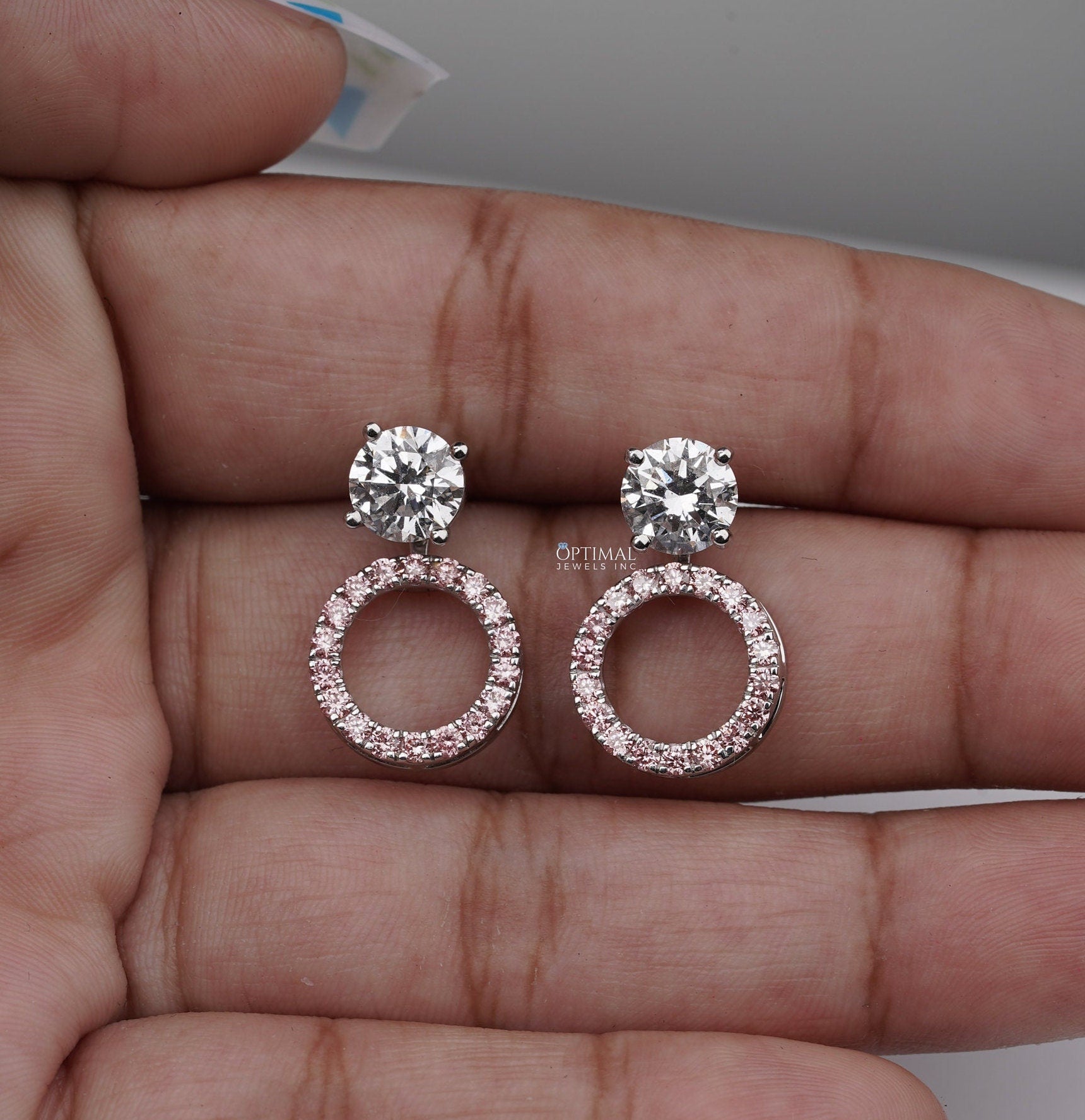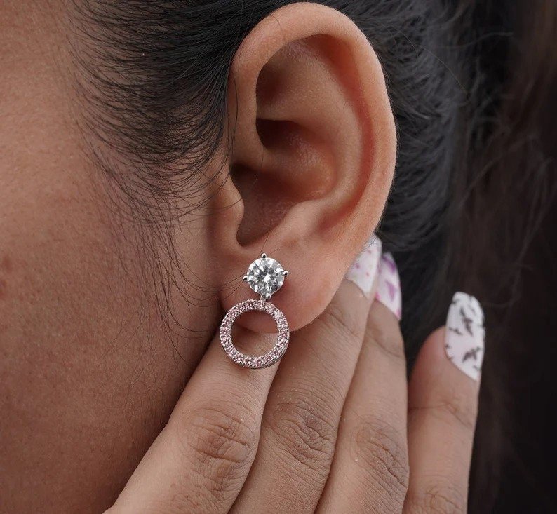 રાઉન્ડ લેબ ડાયમંડ ઈયરીંગ 2.44 Ctw પિંક હેલો ડાયમંડ ઈયરીંગ જેકેટ ઈયરીંગ વ્હાઇટ ગોલ્ડ સ્ટડ ઈયરીંગ લેબ ગ્રોન ડાયમંડ ઈયરીંગ ગીફ્ટ મહિલાઓ માટે