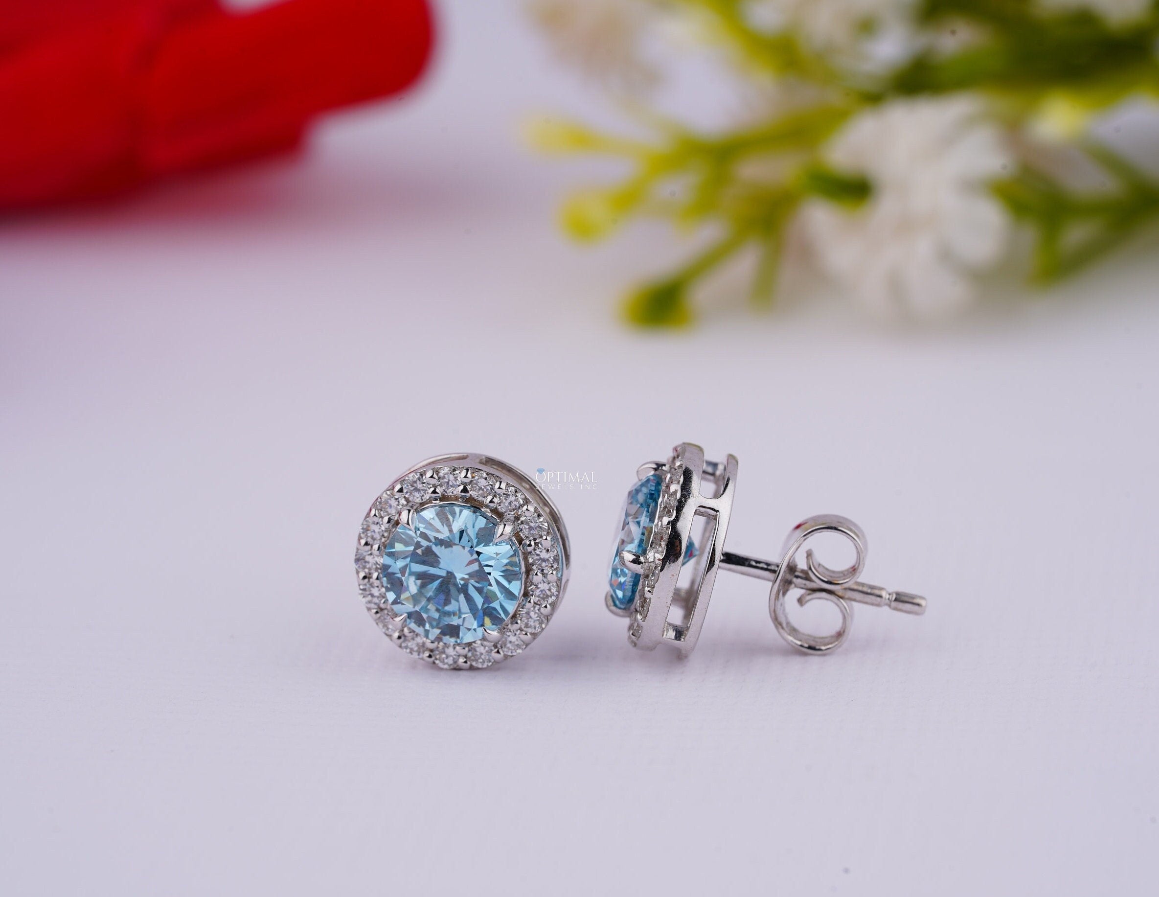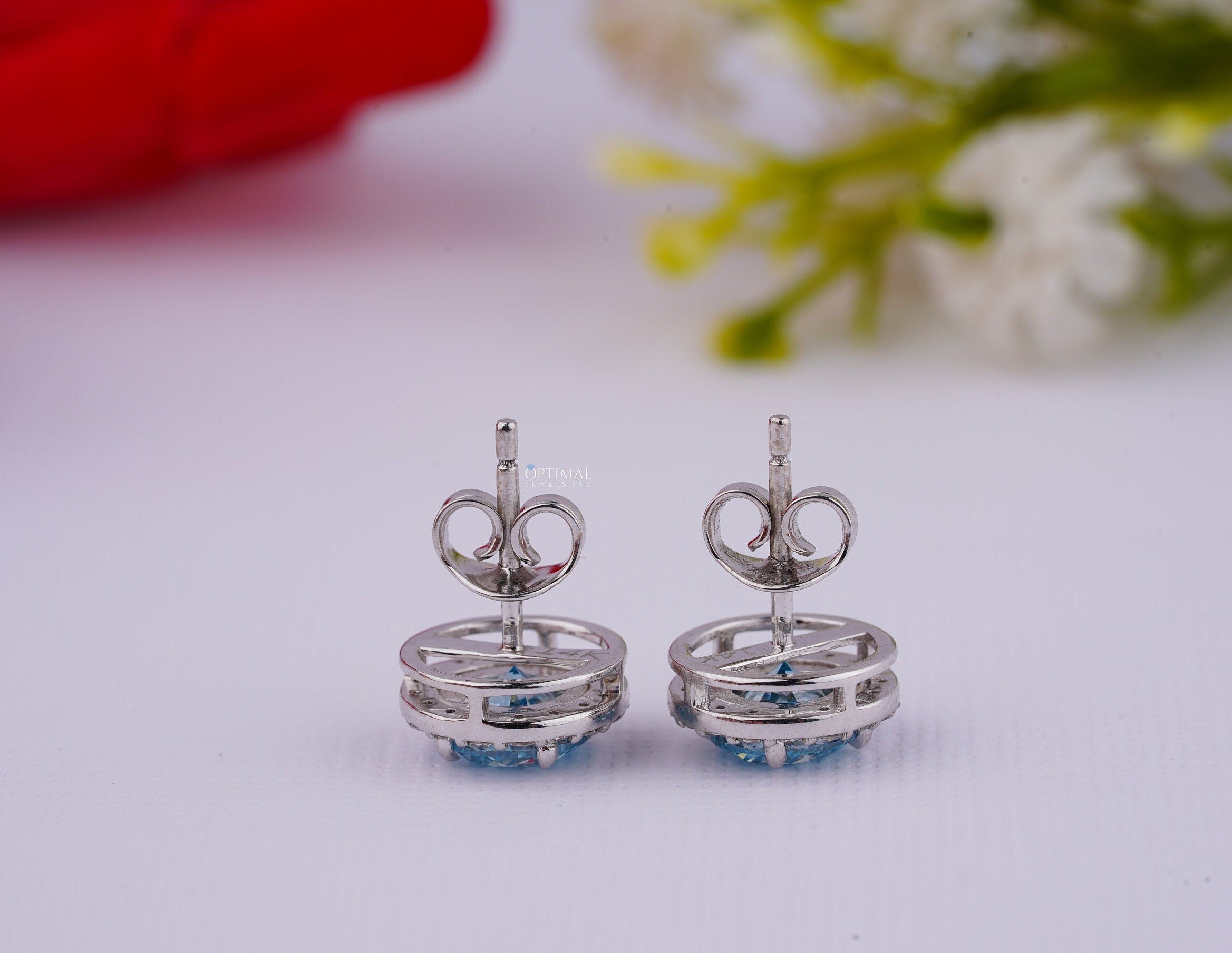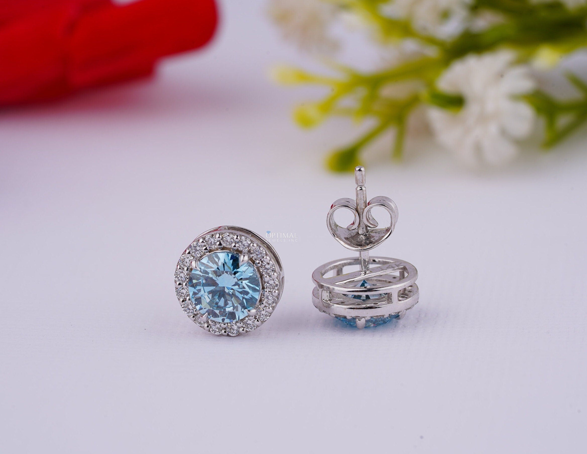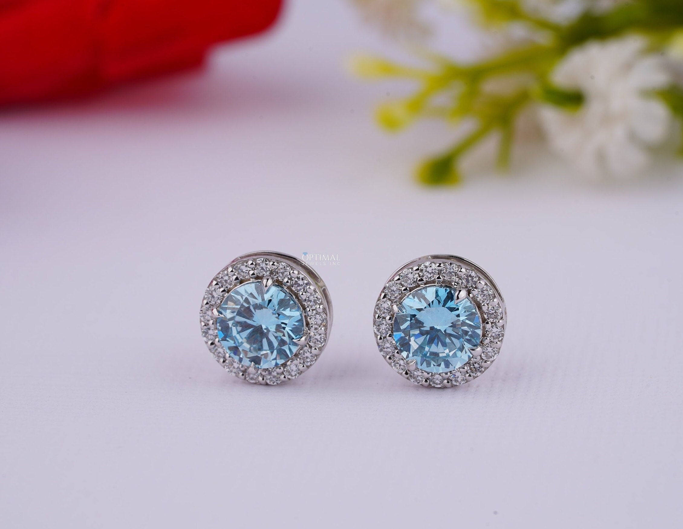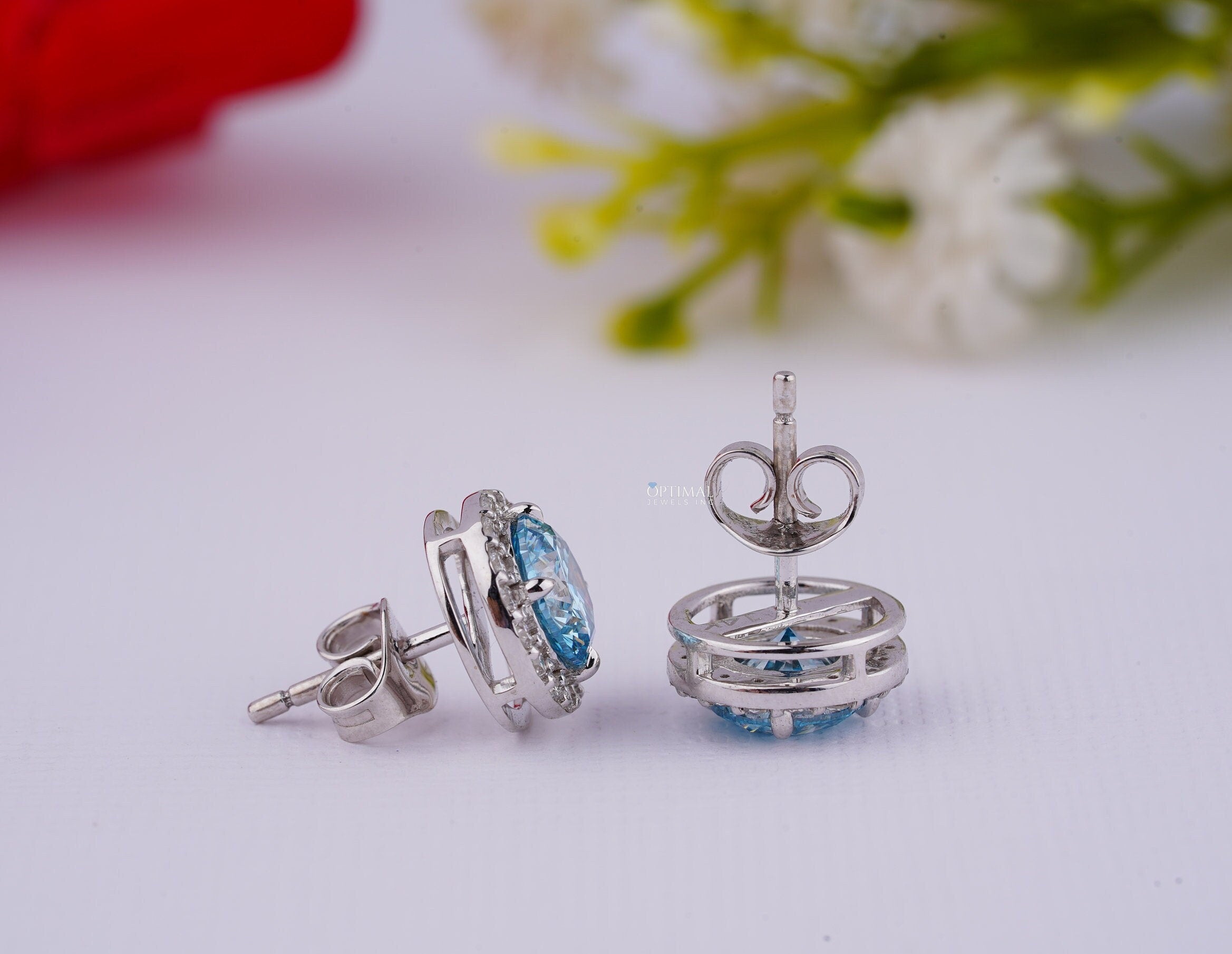 નીલમ બ્લુ લેબ ડાયમંડ ઇયરિંગ્સ 2.40 Ctw IGI સર્ટિફાઇડ રાઉન્ડ હેલો ડાયમંડ ઇયરિંગ વ્હાઇટ ગોલ્ડ સ્ટડ ઇયરિંગ મહિલાઓ માટે તેના માટે ભેટ