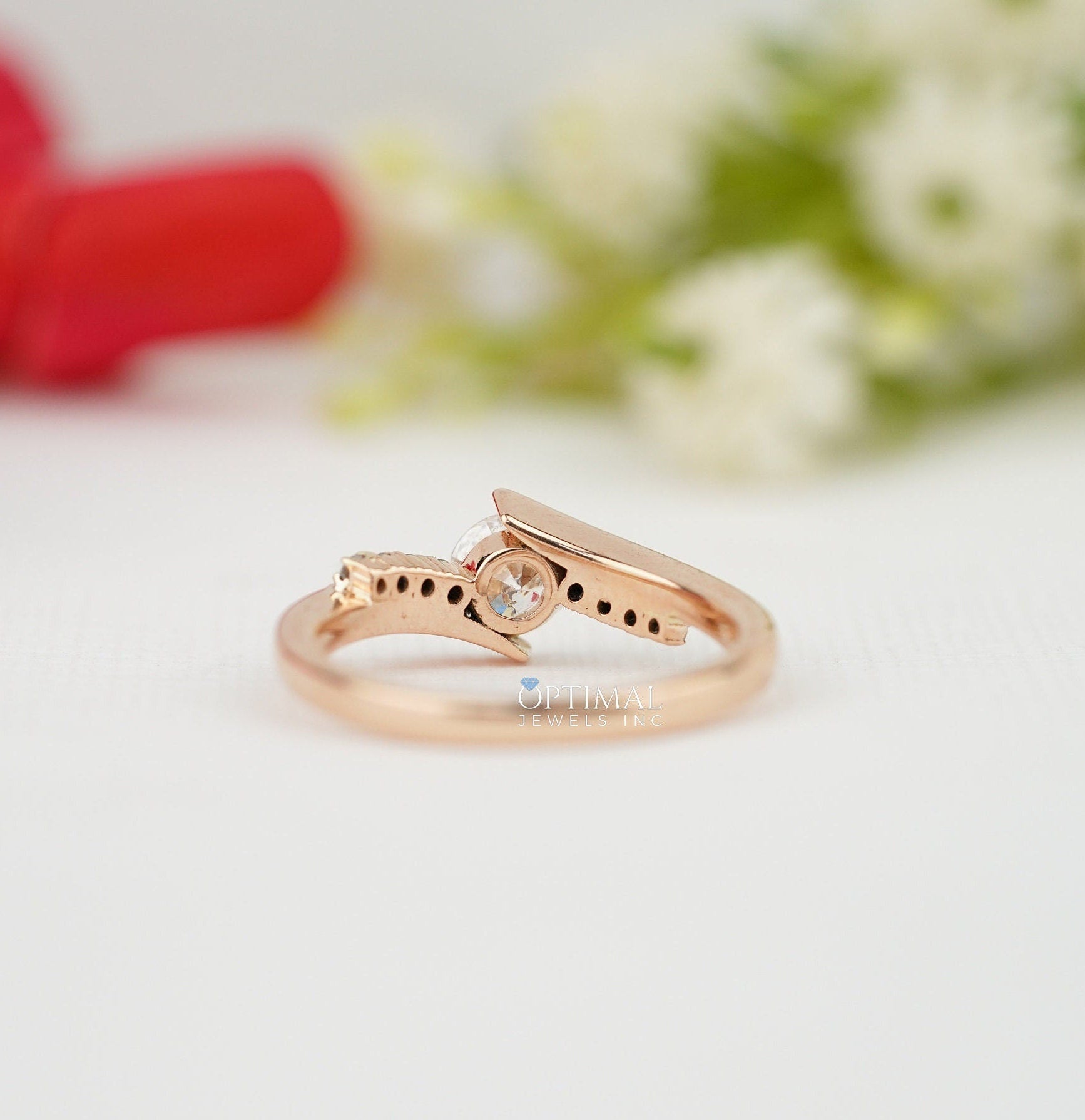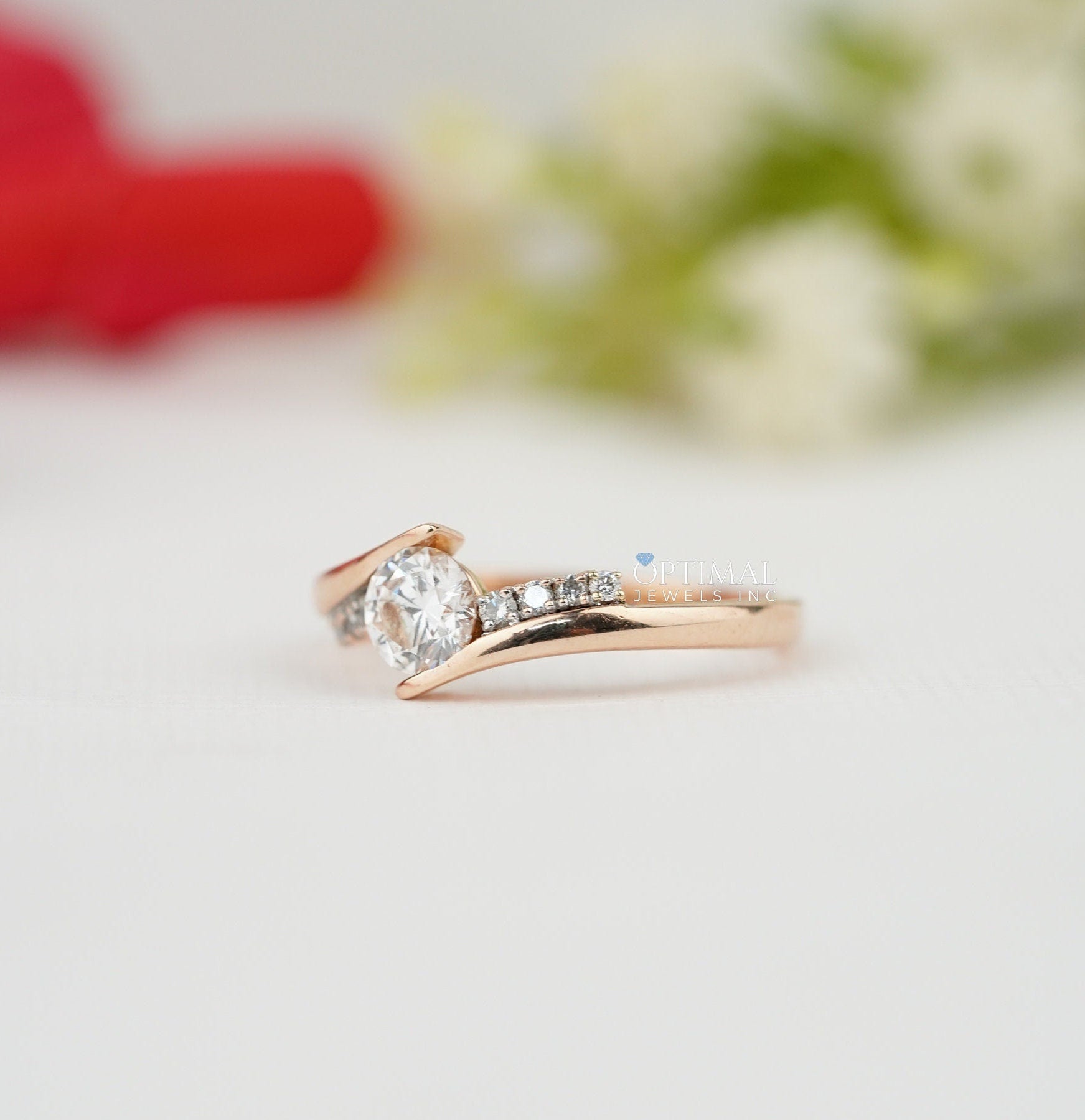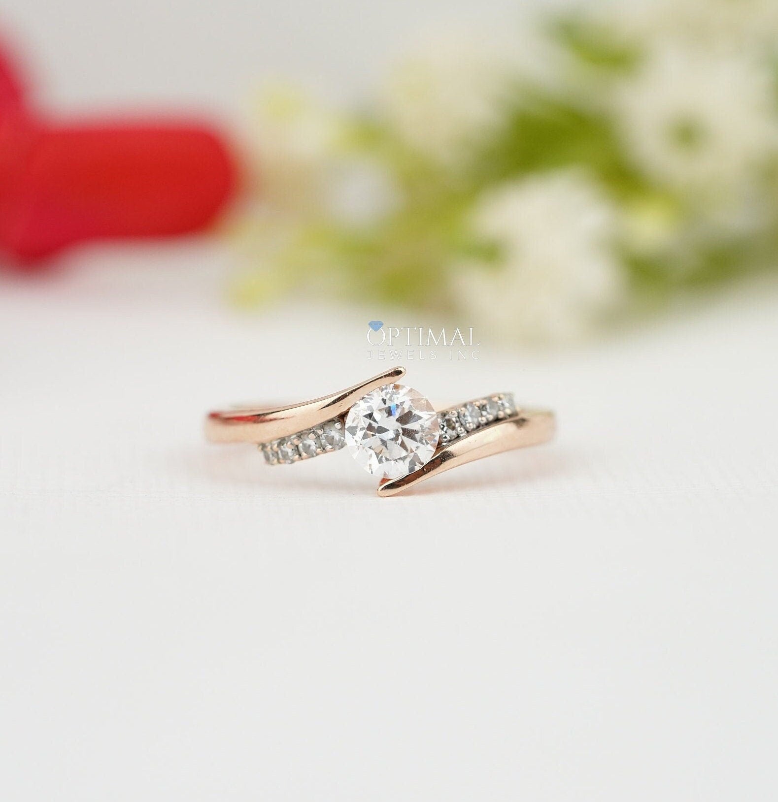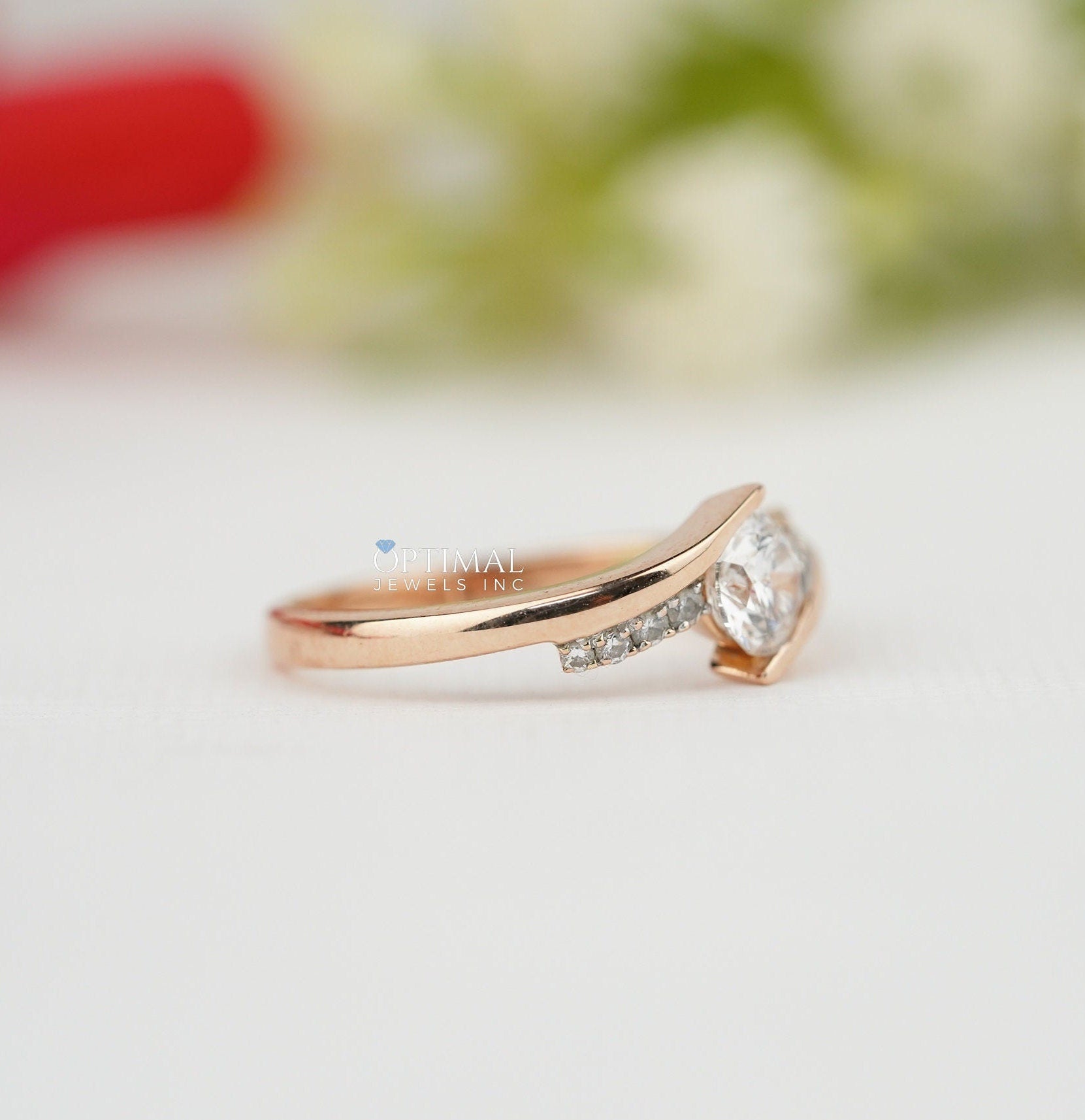 સ્પાર્કિંગ રાઉન્ડ લેબ ડાયમંડ રીંગ 0.75 CTW પેવ સેટ રીંગ સોલિડ રોઝ ગોલ્ડ બેન્ડ ડાયમંડ એન્ગેજમેન્ટ રીંગ વેડિંગ રીંગ તમામ પ્રસંગો માટે પરફેક્ટ