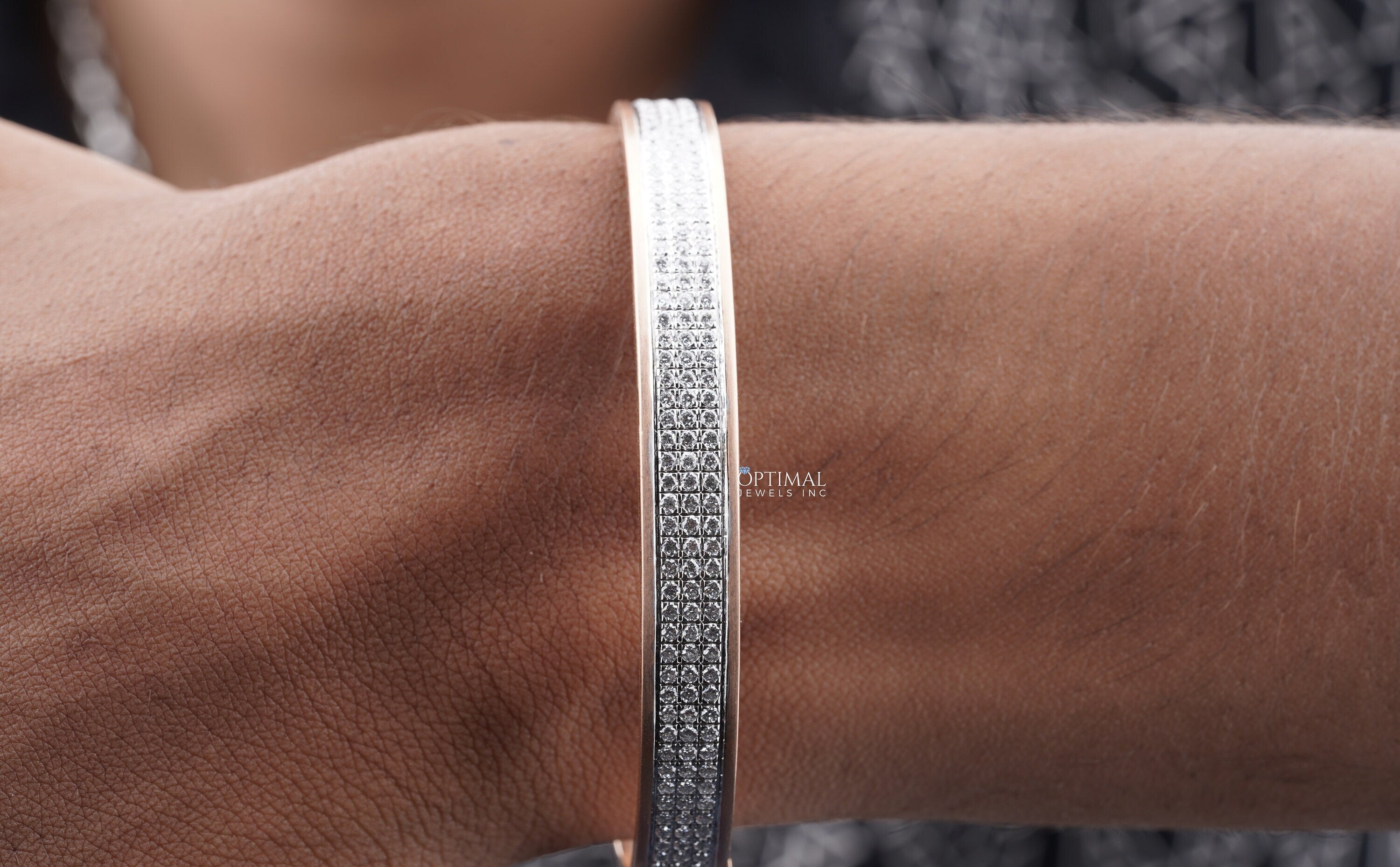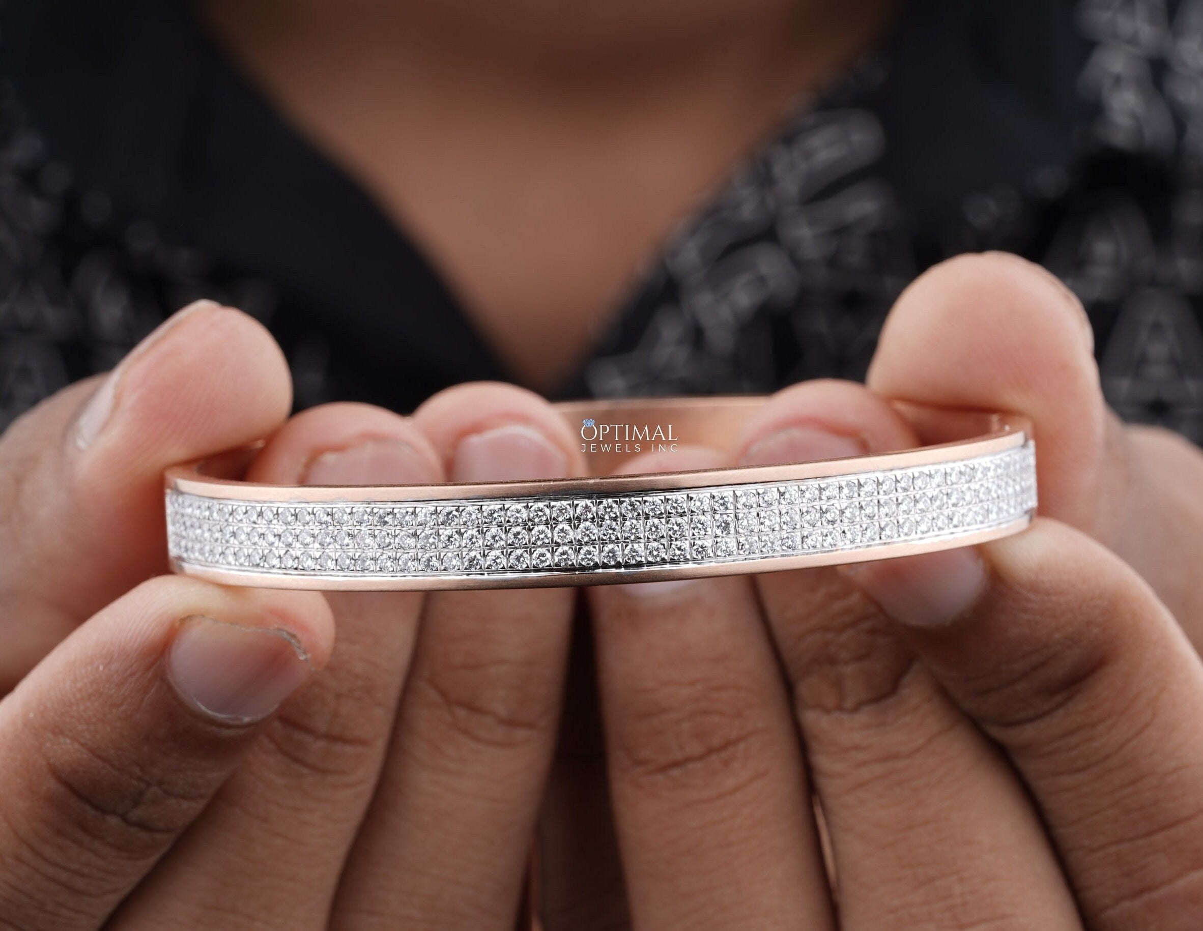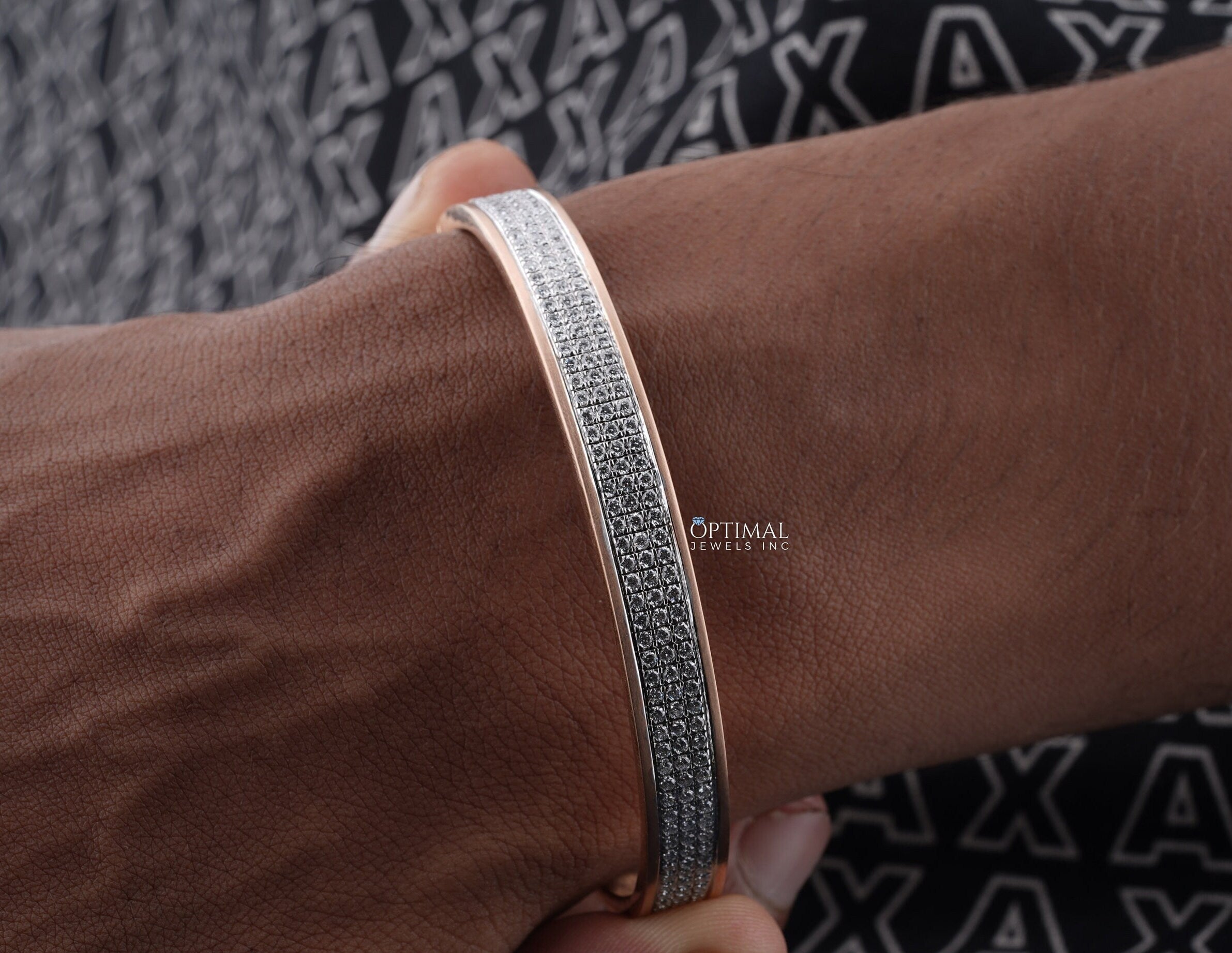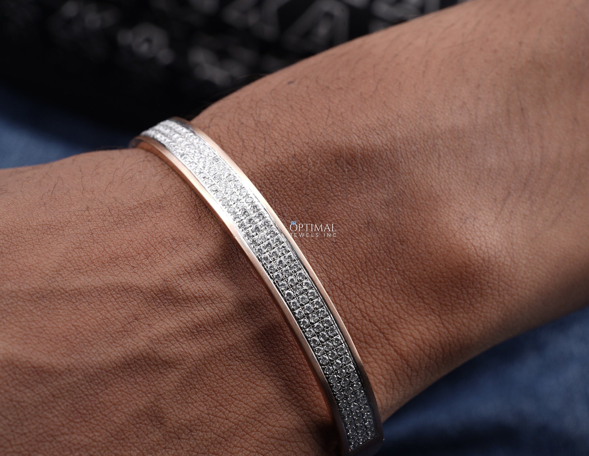 અદભૂત રોઝ ગોલ્ડ 3.25 CTW લેબ-ગ્રોન ડાયમંડ બ્રેસલેટ, રાઉન્ડ કટ લેબ ડાયમંડ પેવ સેટ બ્રેસલેટ, તેના માટે એનિવર્સરી ગિફ્ટ, મેન્સ બ્રેસલેટ