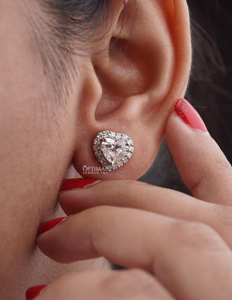 યુનિક હાર્ટ કટ લેબમાં ઉગાડવામાં આવેલી ડાયમંડ ઇયરિંગ 1.60 Ctw IGI સર્ટિફાઇડ હાલો ડાયમંડ ઇયરિંગ વ્હાઇટ ગોલ્ડ ઇયરિંગ પત્ની માટે પરફેક્ટ એનિવર્સરી ગિફ્ટ