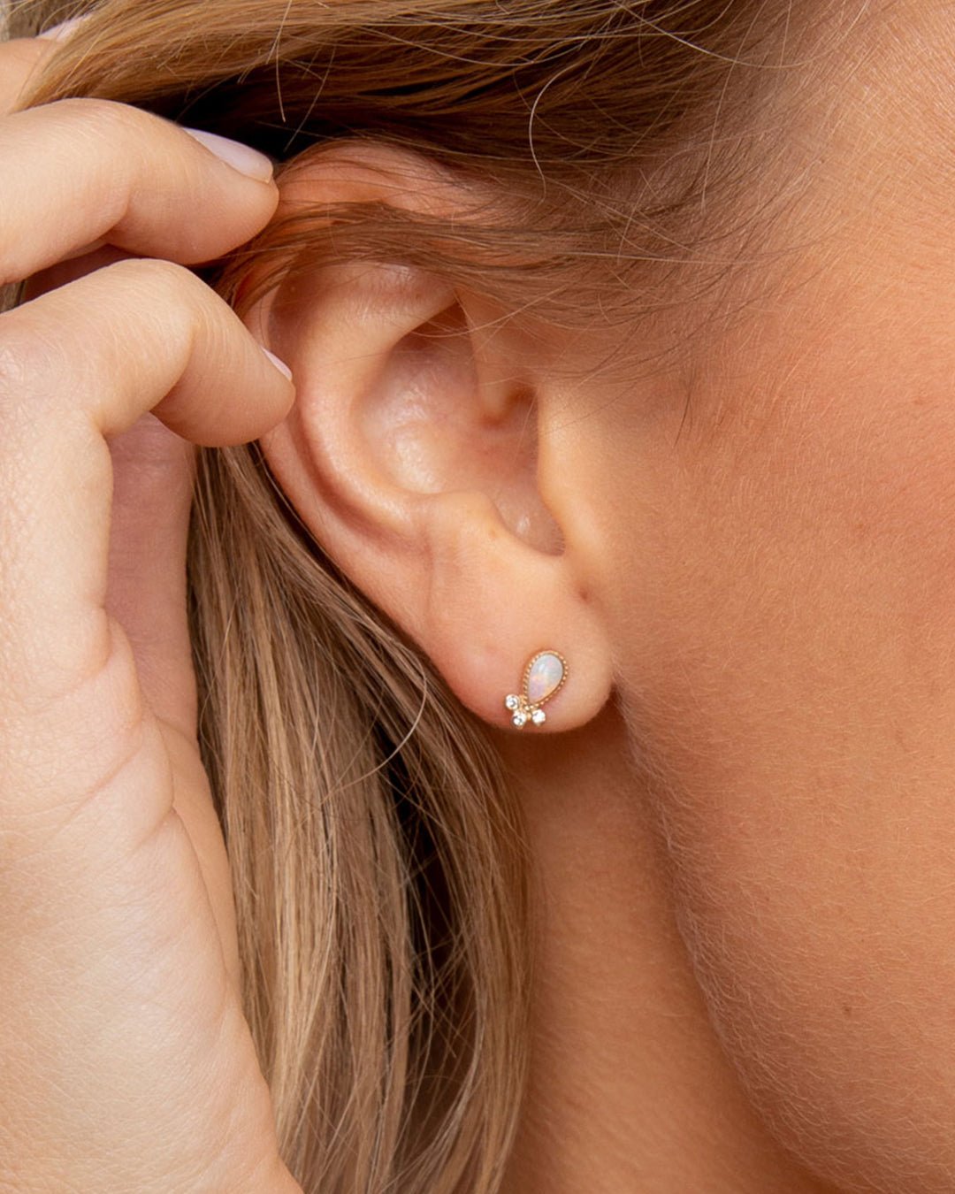 These Diamond and Opal Teardrop Studs are a stunning addition to any jewelry collection. The combination of sparkling diamonds and fiery opals creates a delicate and elegant look. Crafted with high quality materials, these studs are the perfect choice for a touch of sophistication.