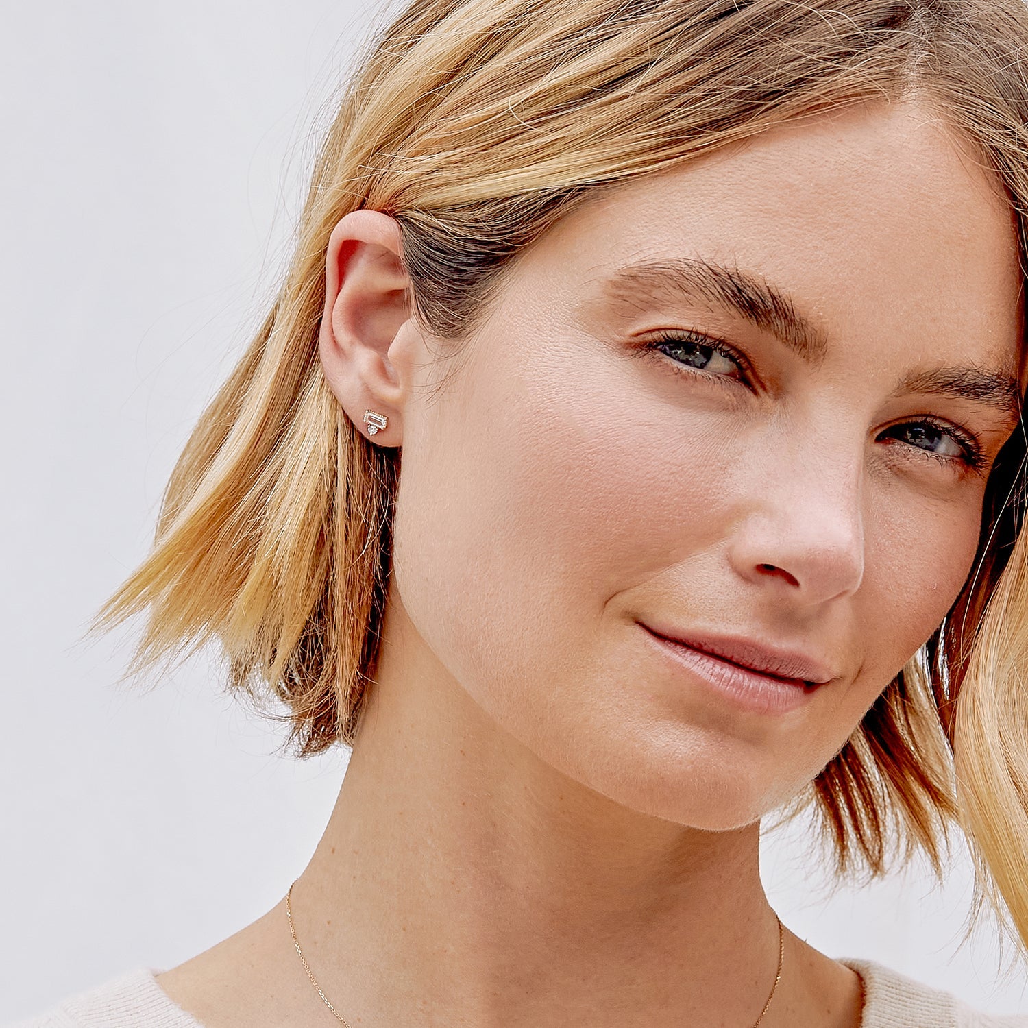 Introducing our Diamond and Topaz Baguette Studs, featuring stunning baguette-cut diamonds and topaz gemstones. These elegant earrings offer a combination of luxury and sophistication, making them the perfect addition to any outfit. With their timeless design and exceptional sparkle, these studs are a must-have for any jewelry collection. Elevate your style with our Diamond and Topaz Baguette Studs.