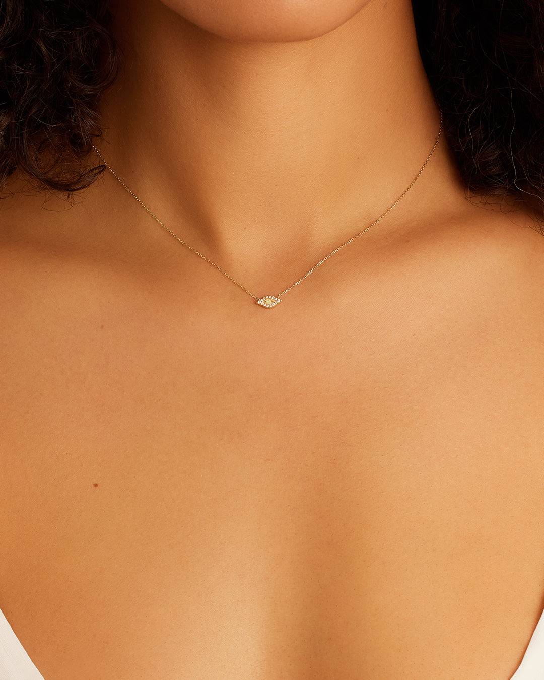 This stunning Diamond Evil Eye Necklace is expertly crafted with sparkling diamonds and a striking evil eye design. A symbol of protection, this necklace is the perfect blend of elegance and spiritual significance. Add it to your collection or give it as a meaningful gift to a loved one.