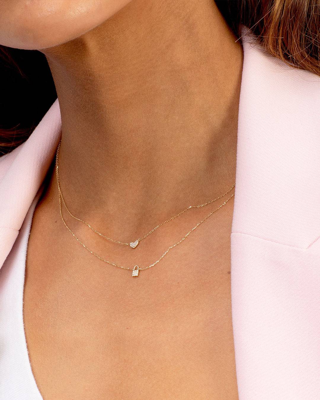 This elegant necklace features a charming diamond pavé heart design, adding a touch of luxury to any outfit. Made with high-quality materials, the necklace is both stylish and durable. Perfect for any occasion, it will make a beautiful addition to your jewelry collection.