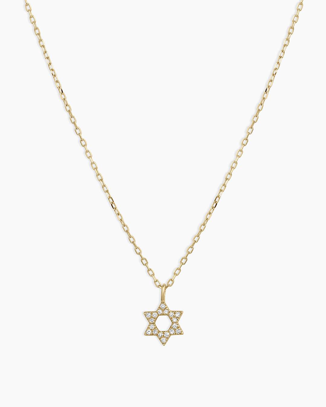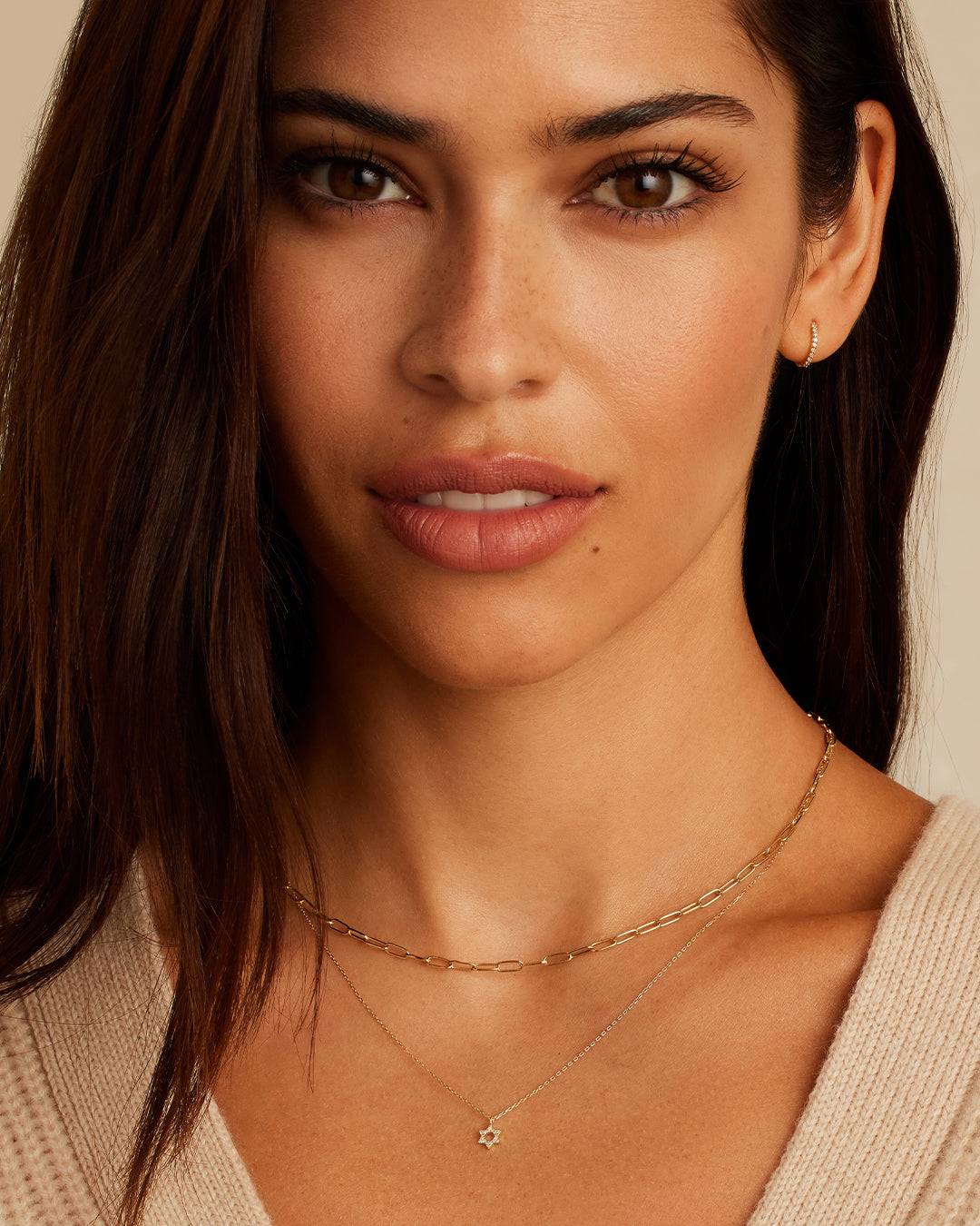 This stunning Diamond Star of David Necklace is the perfect combination of faith and fashion. Crafted with precision, this necklace features a sparkling diamond-encrusted Star of David symbol, representing protection and unity for the wearer. Own a piece of timeless beauty and meaningful symbolism with this necklace.