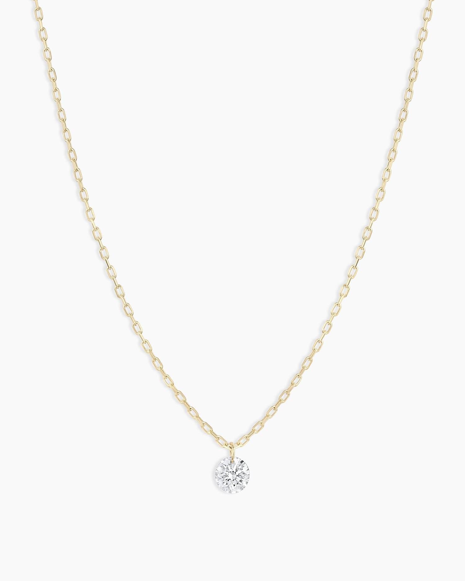 Introducing our Floating Diamond Necklace, a perfect piece of elegant and timeless jewelry. Crafted with high-quality diamonds, this necklace showcases a unique floating design that adds a touch of sophistication to any outfit. With its delicate and intricate design, it is the perfect accessory for any occasion.