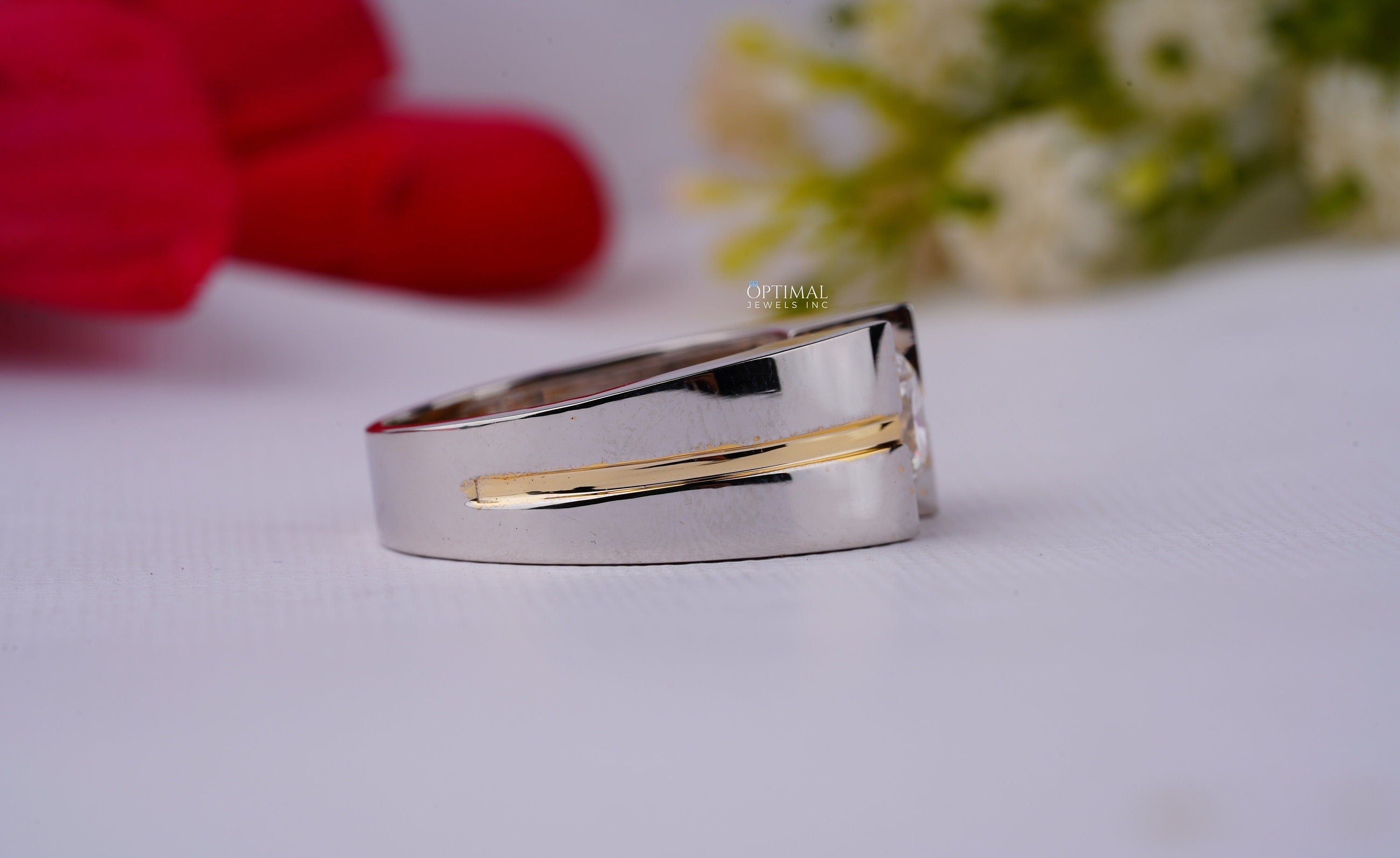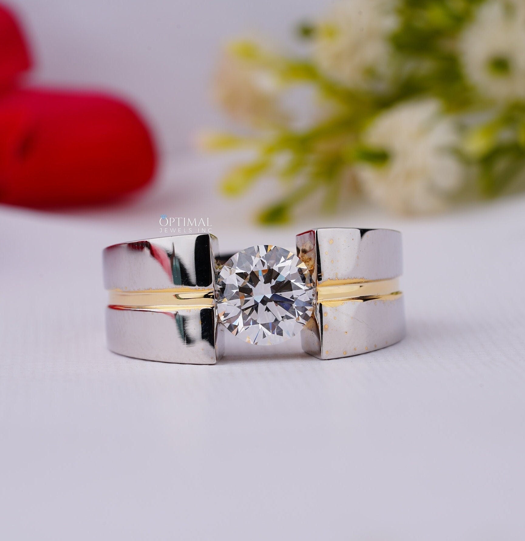 1.35 Ct Round Lab Diamond Engagement Ring IGI Certified 18K Solid White Gold Men's Wedding Band Thick Band Anniversary Ring Gift For Him