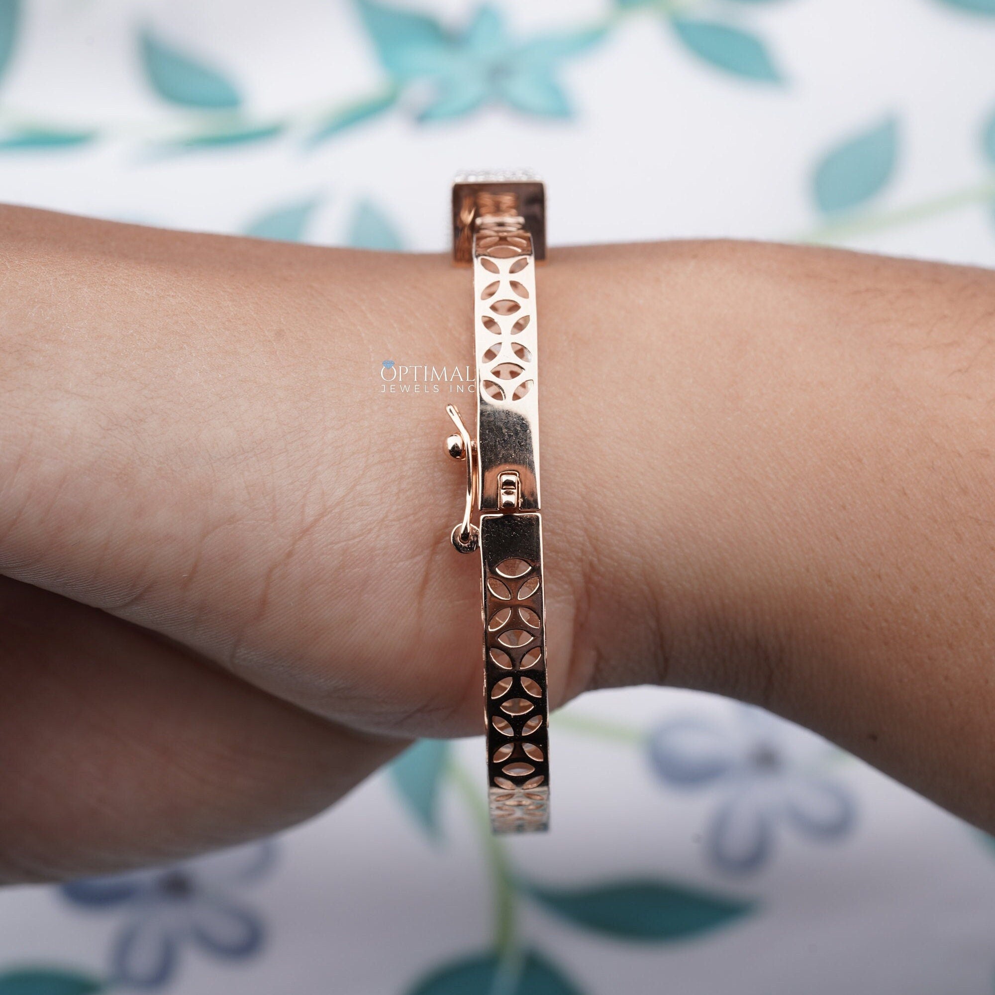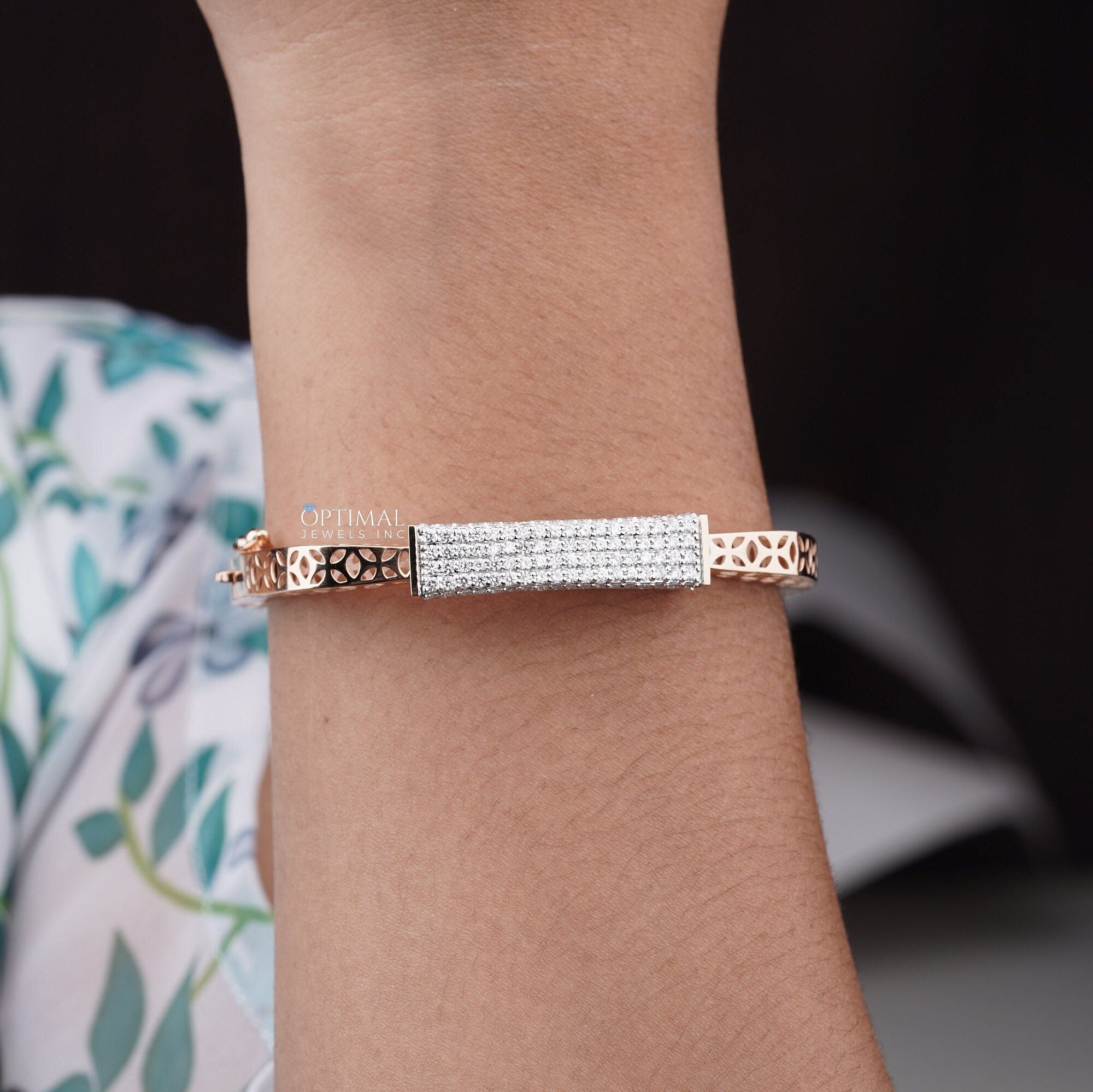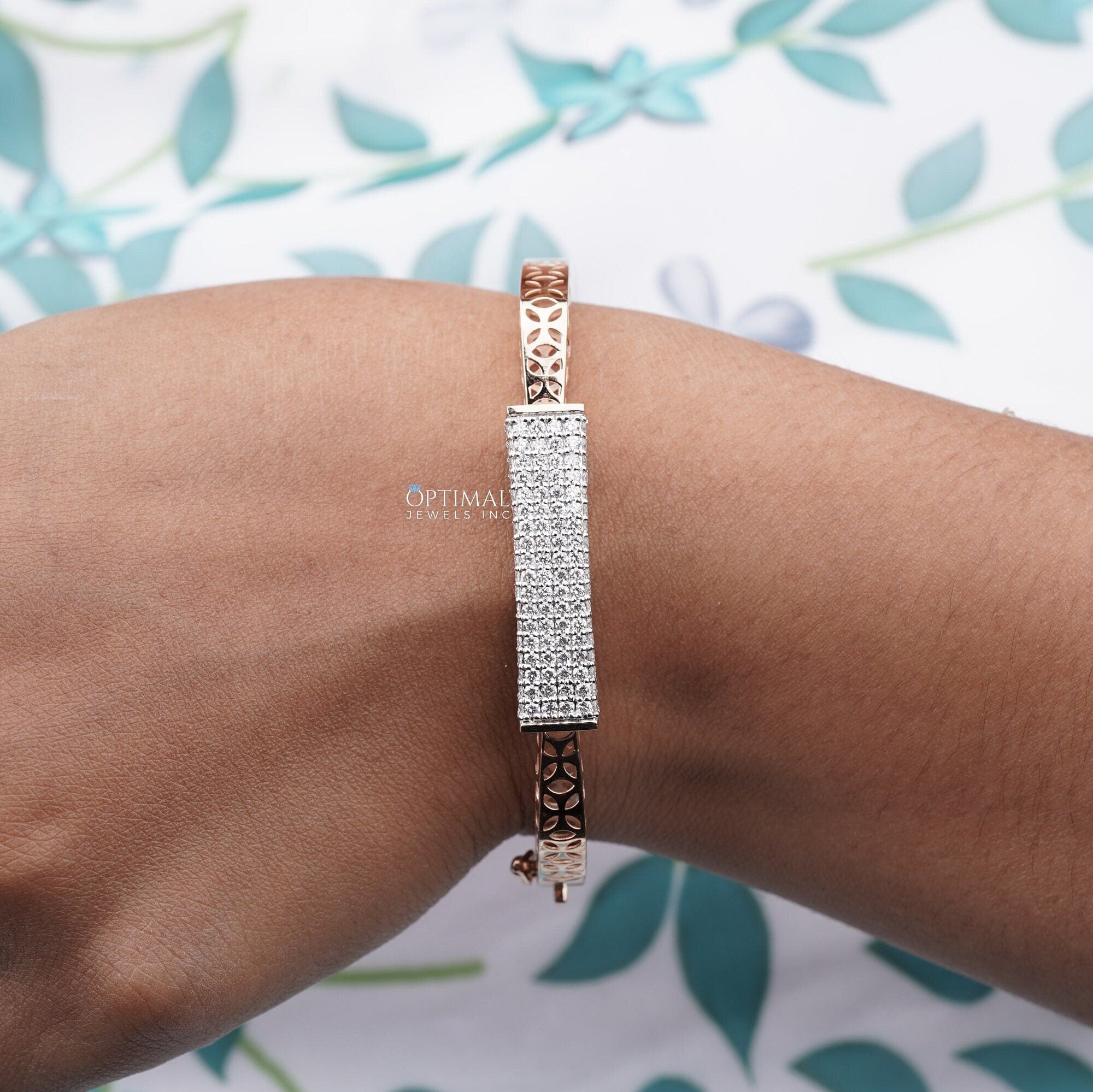 1.75 CTW Cuban Link Lab-Grown Diamond Bracelet, Pave-Set Round Diamonds Bar Bracelet, Rose Gold Fancy Design Band, Ideal Gift For Bridal