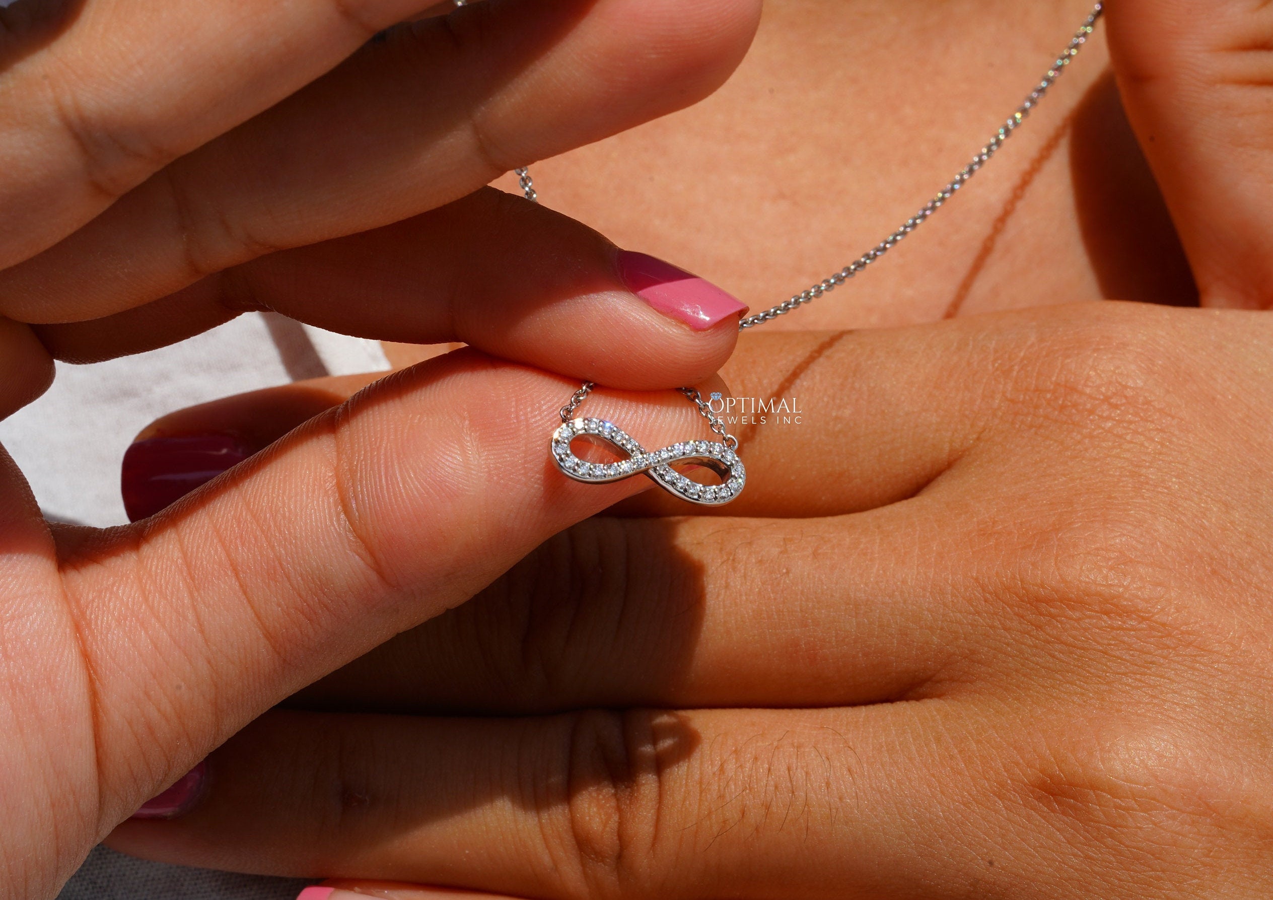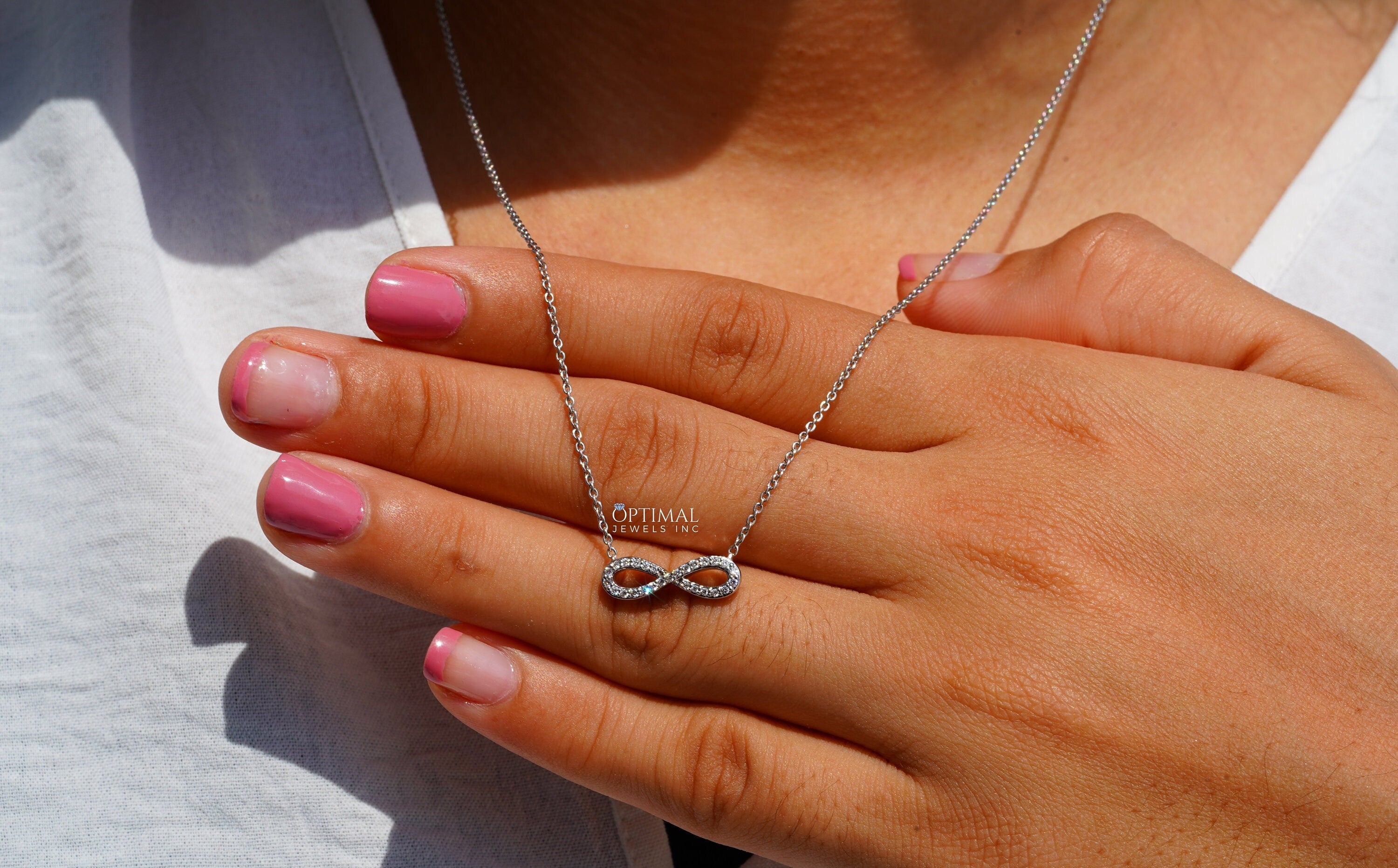 Unique Infinity Shape Diamond Necklace, 13 Cents Lab Grown Diamond Pendant, White Gold Diamond Pendant For Women, Birthday Gift For Her