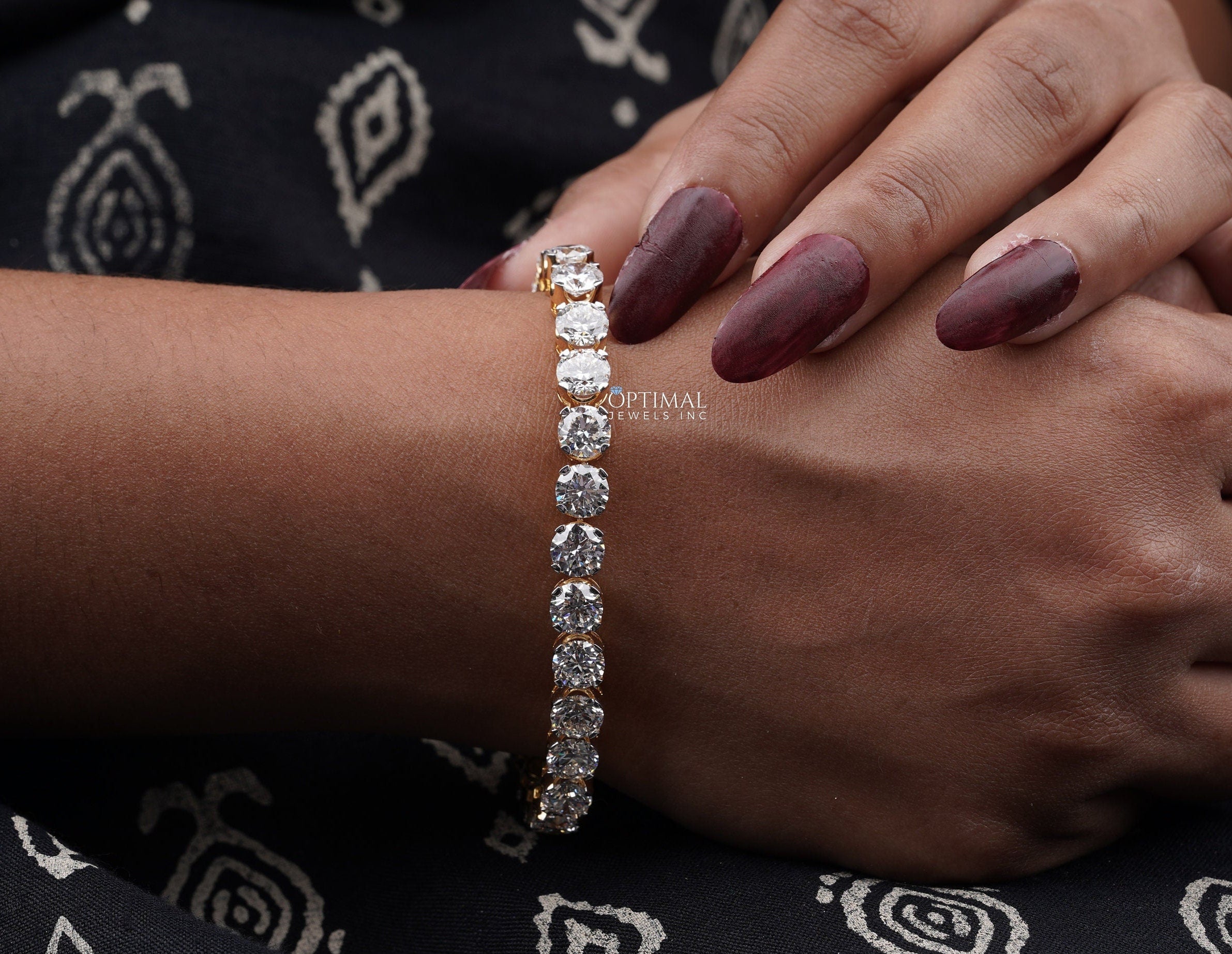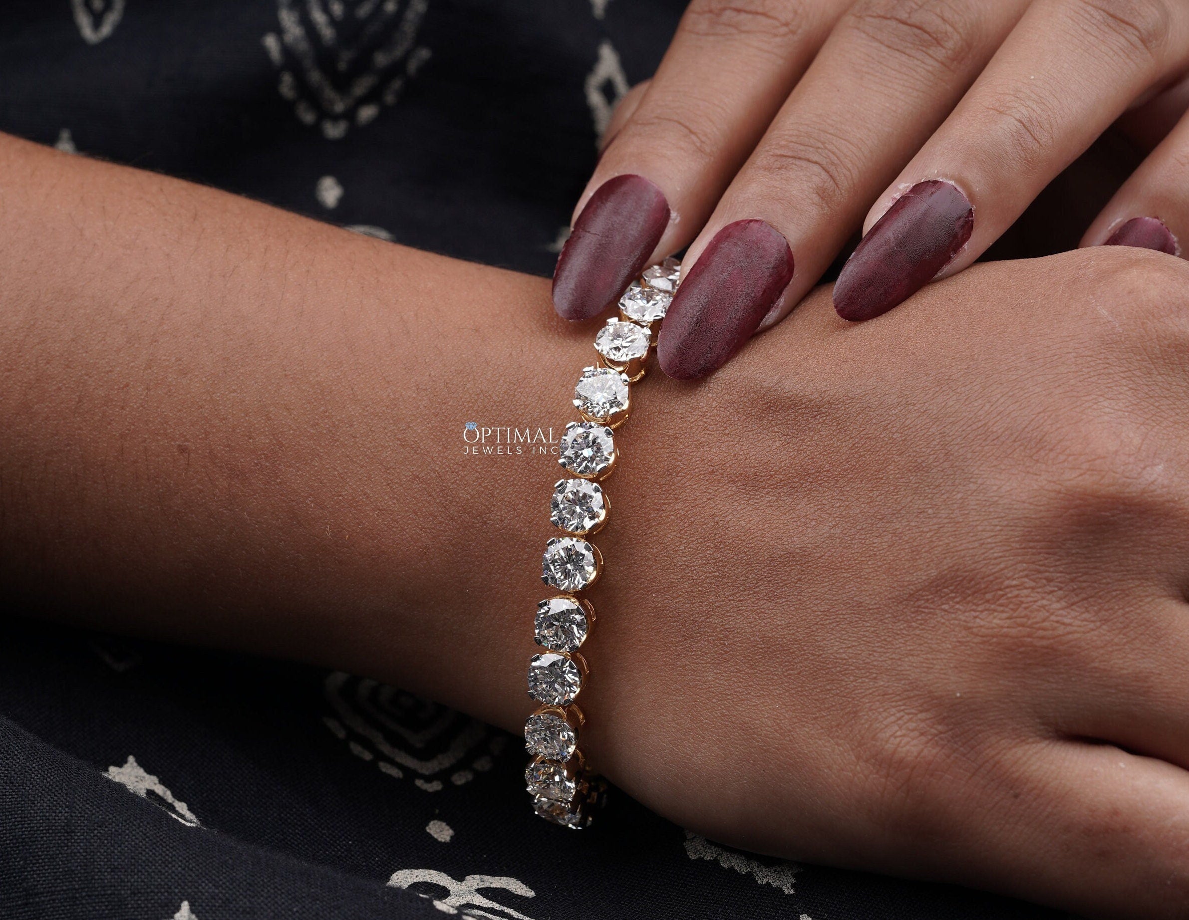 Unique Round Cut Lab Diamond Eternity Bracelet, 23.00 CTW Lab-Grown Diamond Tennis Bracelet, Yellow Gold Women's Bracelet, For All Occasions