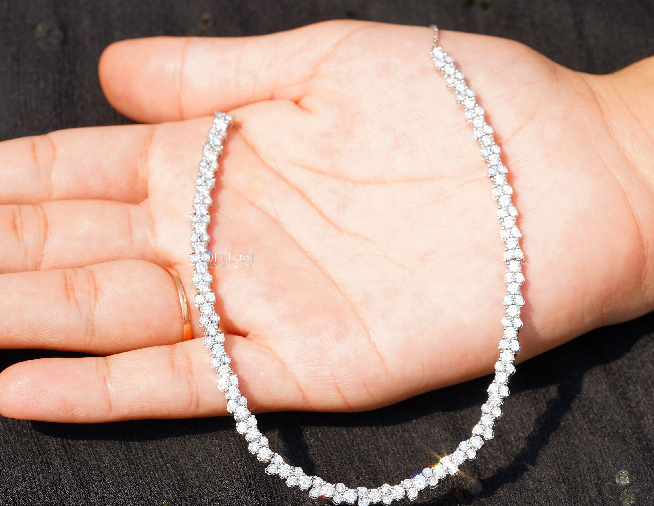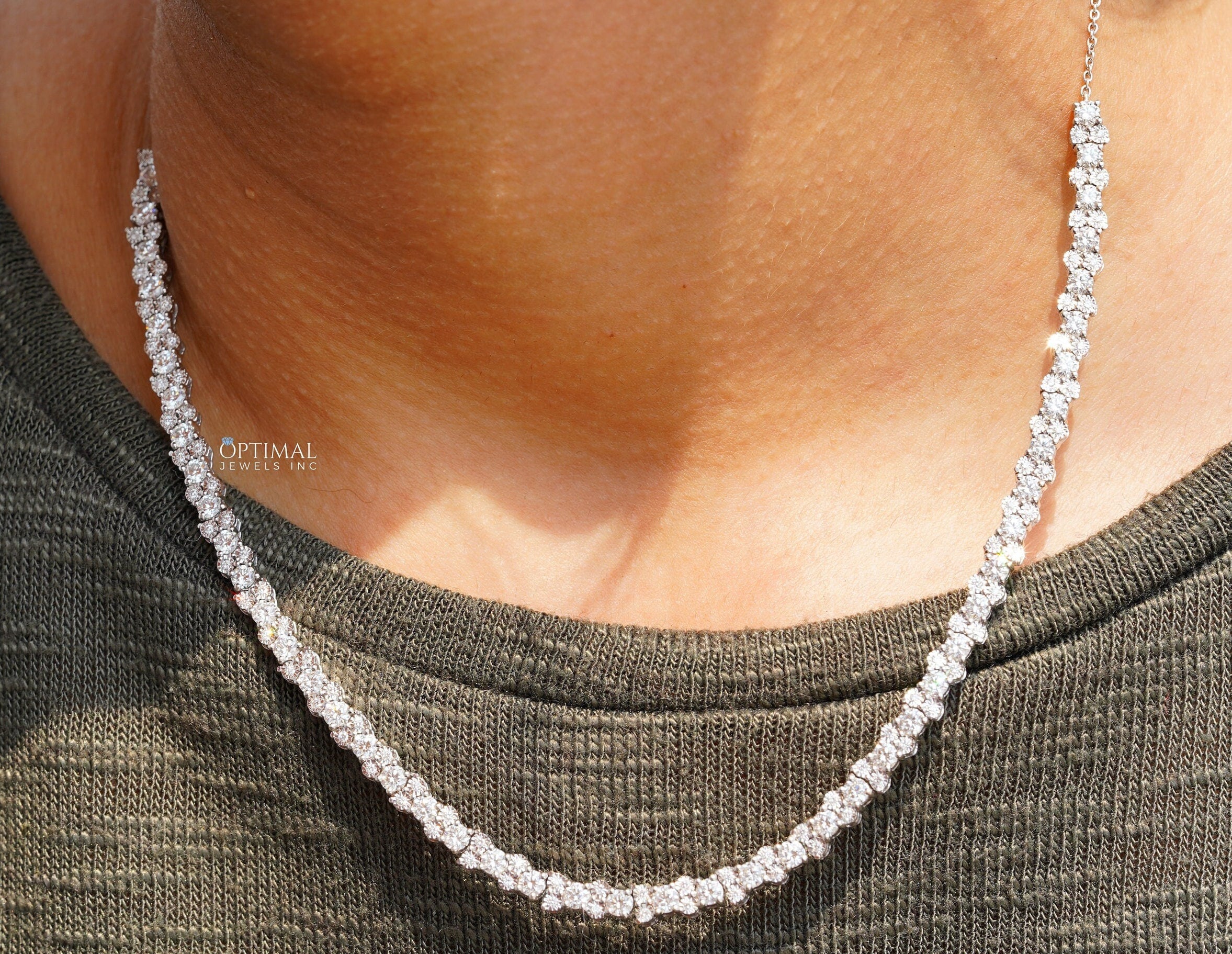 Versatile Lab Grown Diamond Cluster Tennis Necklace – 2.5 Ctw Round Cut Diamonds, 18” Wedding Necklace for Women, Anniversary Gift for Her