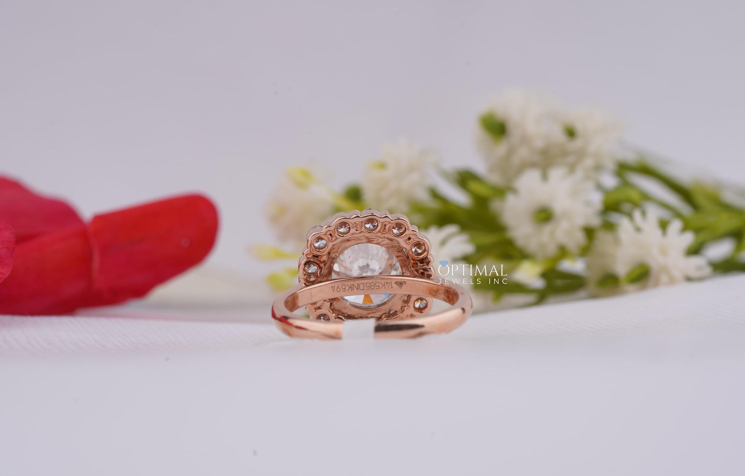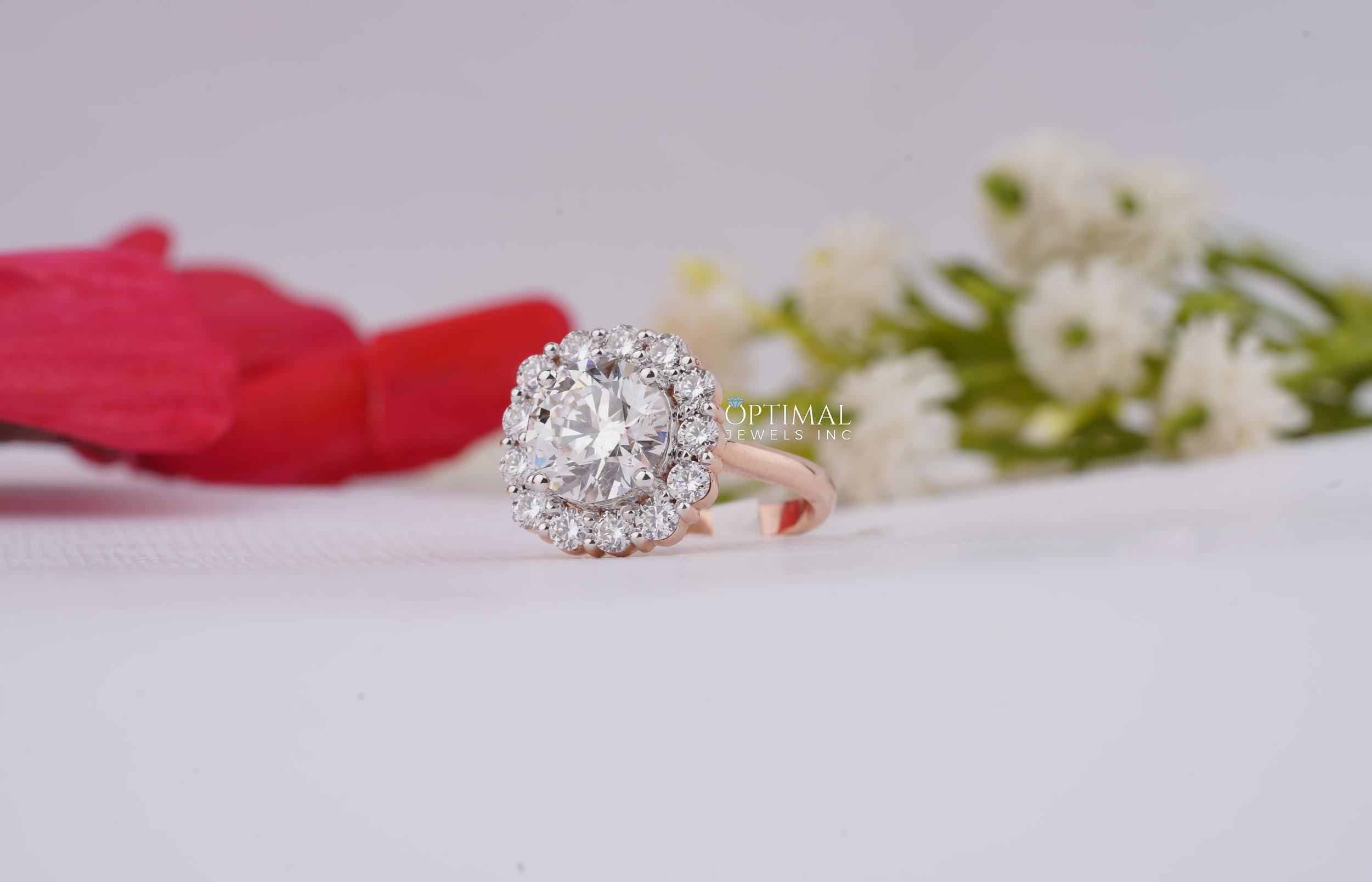 Vintage Style Lab Grown Diamond Ring 3.50 Ctw Round Cut Halo Diamond Ring IGI Certified Lab Created Rose Gold Ring Prefect For All Occasion